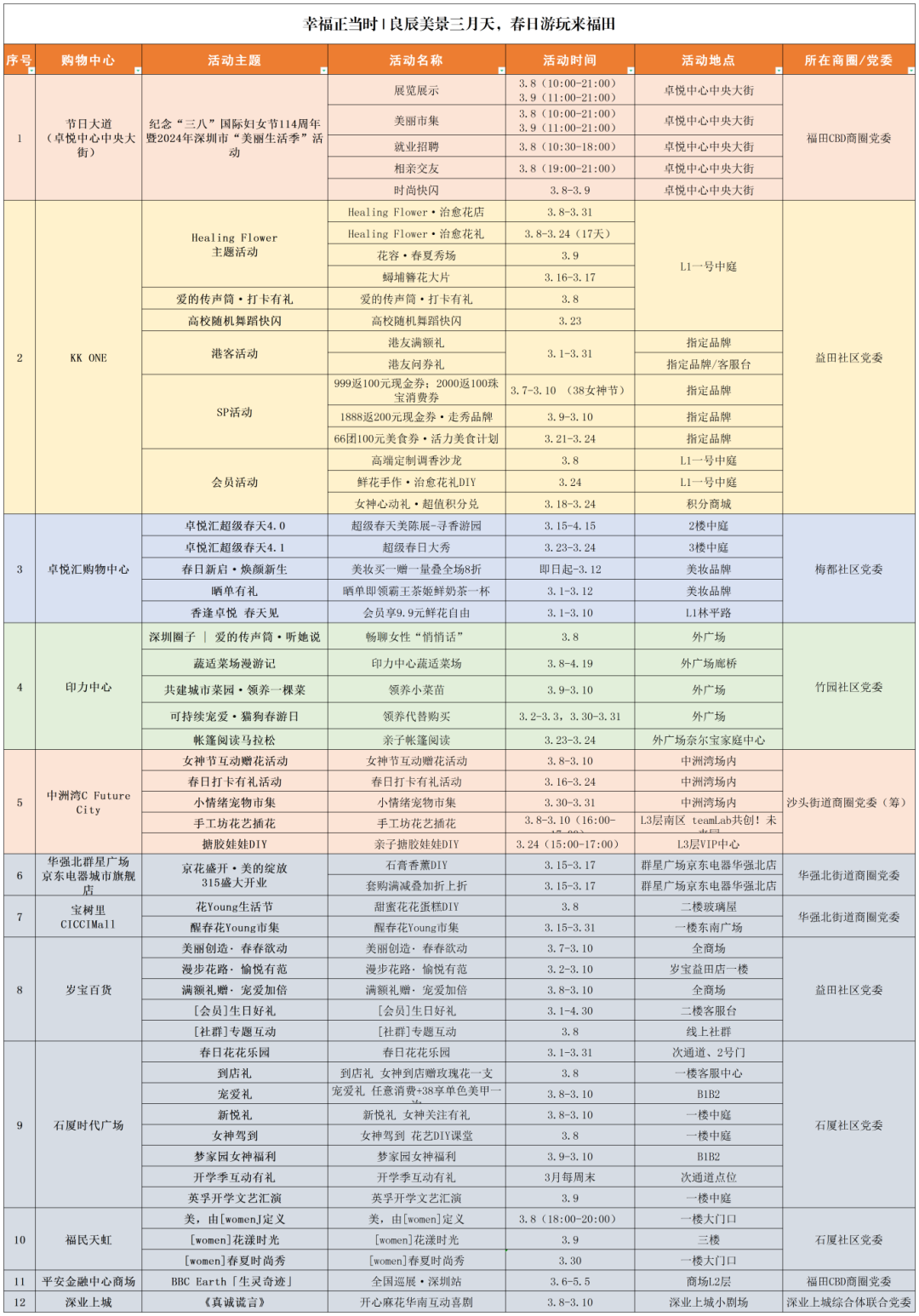 美丽市集设100个摊位,涵盖时尚、健康、生活、公益区域板块;就业招聘板块设置“美丽职场 圳等你来”女性专场招聘。