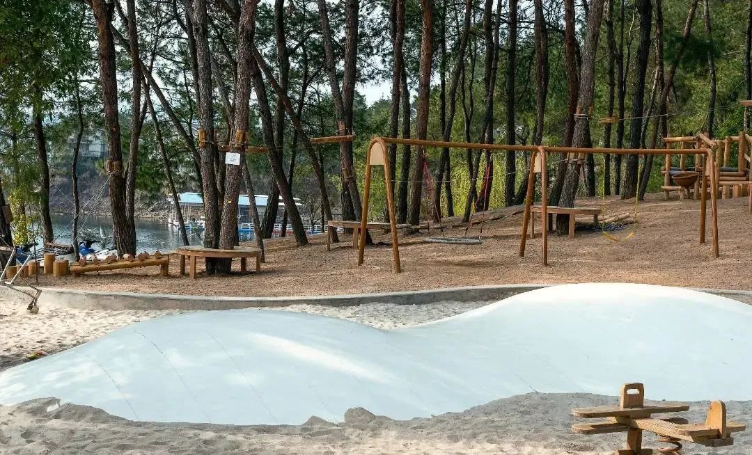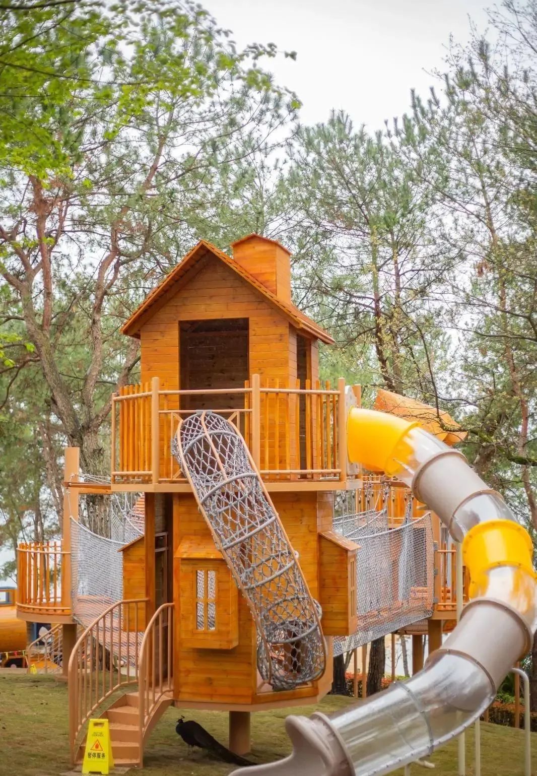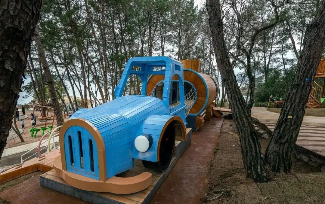 作为全新升级改造的无动力乐园拥有多个运动探险项目,蹦蹦云、滑索、寻宝沙池、汽车滑梯、松林穿越等游玩设备让孩子们在松树林里攀爬玩乐,既能锻炼体格又能寻找快乐,是户外亲子运动的好去处。