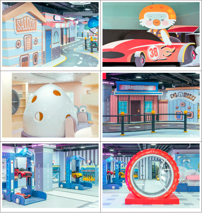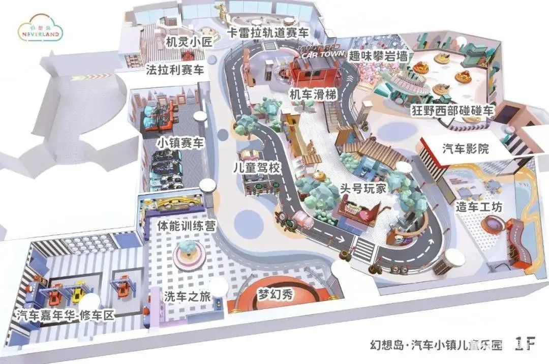整个幻想岛围绕汽车主题搭建,有机车滑梯、卡雷拉轨道赛车、机灵小匠、法拉利赛车、儿童驾校、狂野西部碰碰车、汽车嘉年华修车、洗车、拼装等十多个多功能区域,主题突出乐趣无穷,为家庭出游提供丰富多彩的选择。