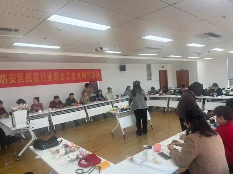 为了深入贯彻中国工会十八大精神,主要是为了激励女职工在砥砺前行中彰显巾帼担当,更好的发挥“半边天”作用,积极的投身于民宿产业的高质量发展。3月8日,临安区民宿行业联合工会特举办“女神节”毛线钩针+茶话会活动,共计43名女职工代表参加本次活动。