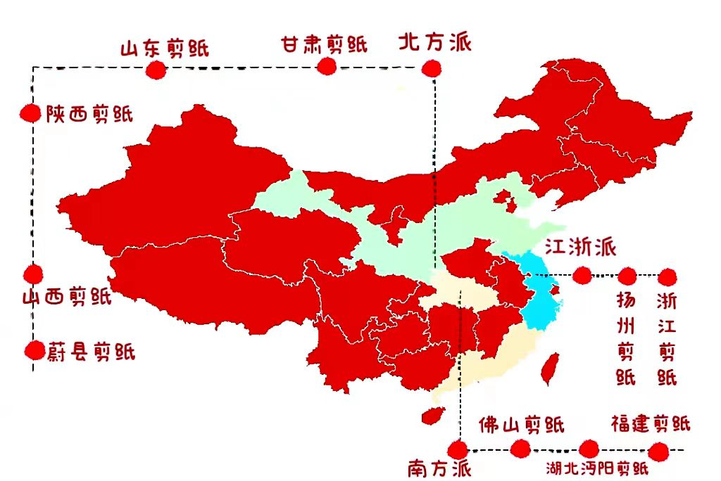 剪纸是一种用剪刀或刻刀在纸上剪刻花纹,用于装点生活或配合其他民俗活动的民间艺术。其传承的视觉形象和造型格式,蕴涵丰富的文化历史信息,表达了广大民众的社会认知、道德观念等。剪纸艺术遗产入选了中国国家级非物质文化遗产名录和人类非物质文化遗产代表作名录。剪纸分为南方派剪纸、江浙派剪纸和北方派剪纸三个类别,不同类别的剪纸各具特色,交融于不同地区人民的生活。我们将从剪纸的三大派别带大家走进剪纸文化之旅。