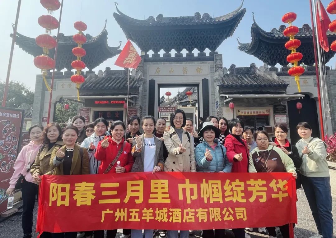 为庆祝“三八”妇女节,丰富女职工的文化娱乐生活,展示女职工健康、阳光的精神风貌,3月8日,五羊城酒店组织全体女职工前往番禺余荫山房开展户外踏青活动。
