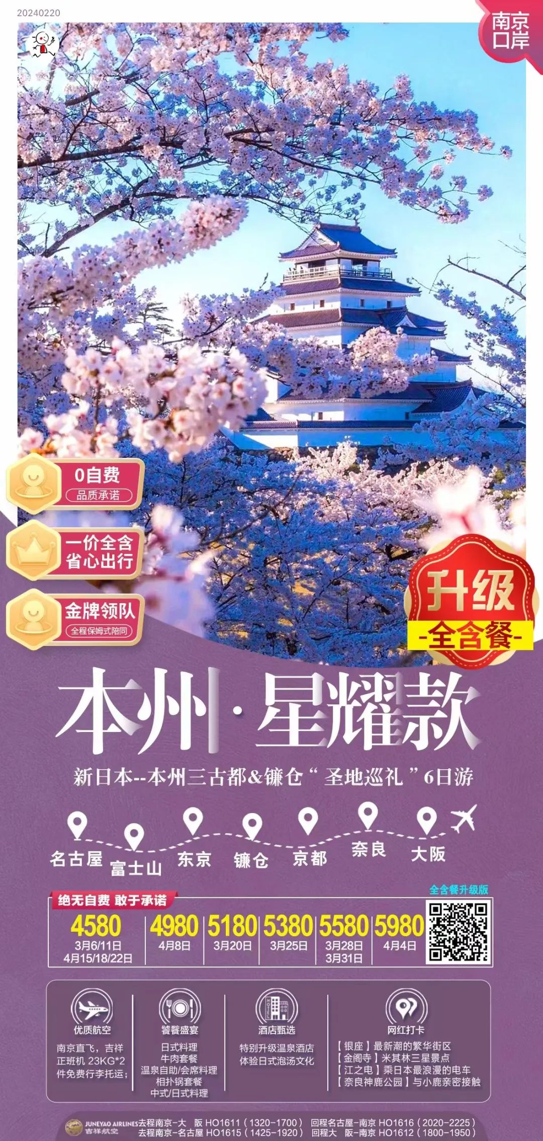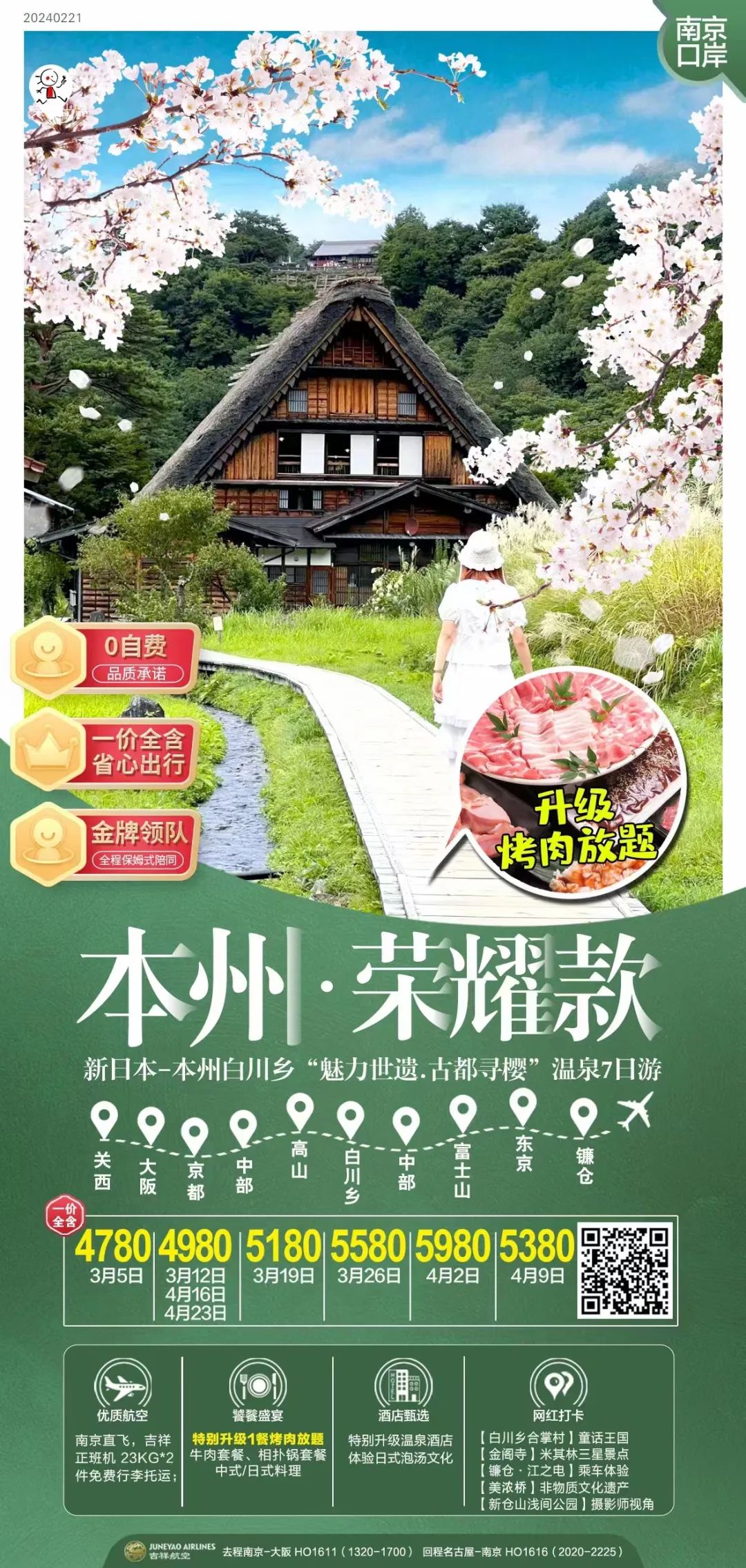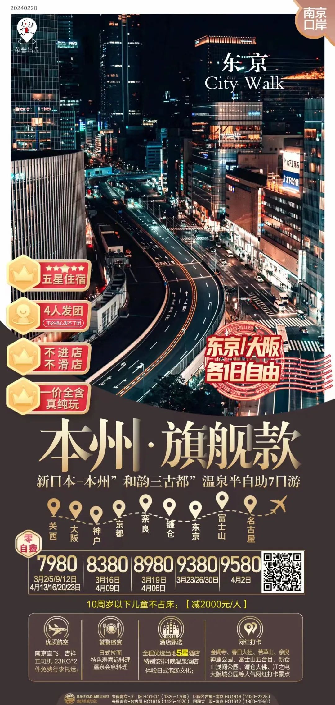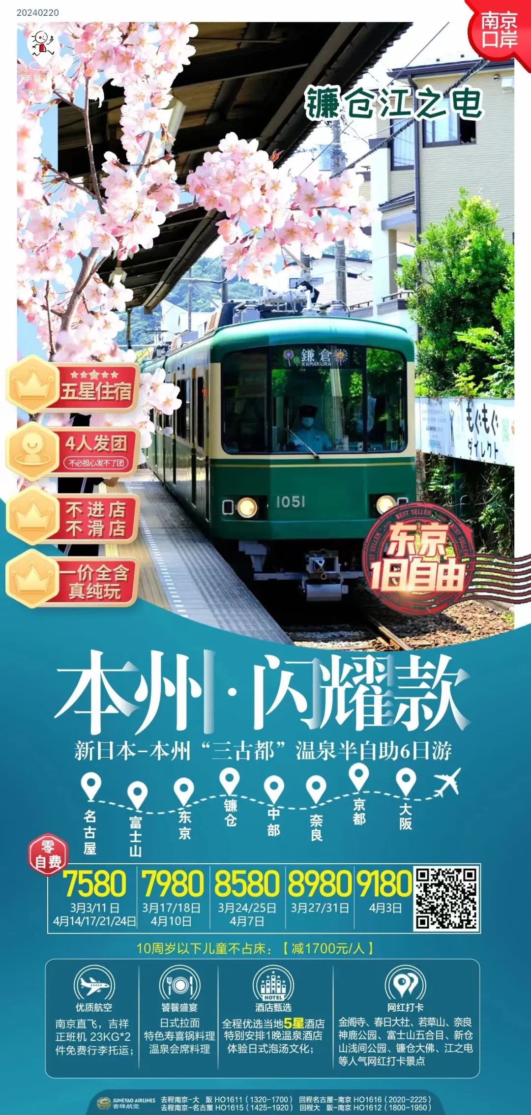 旗舰:本州7天,无领队,东京/大阪各一日自由