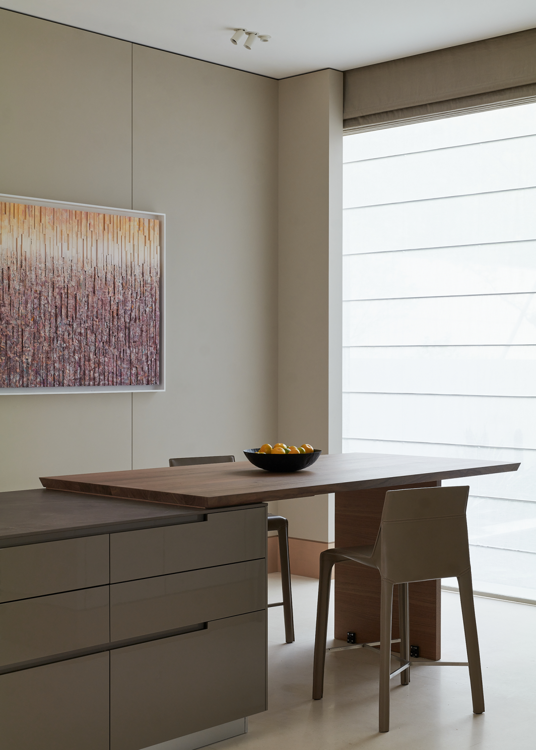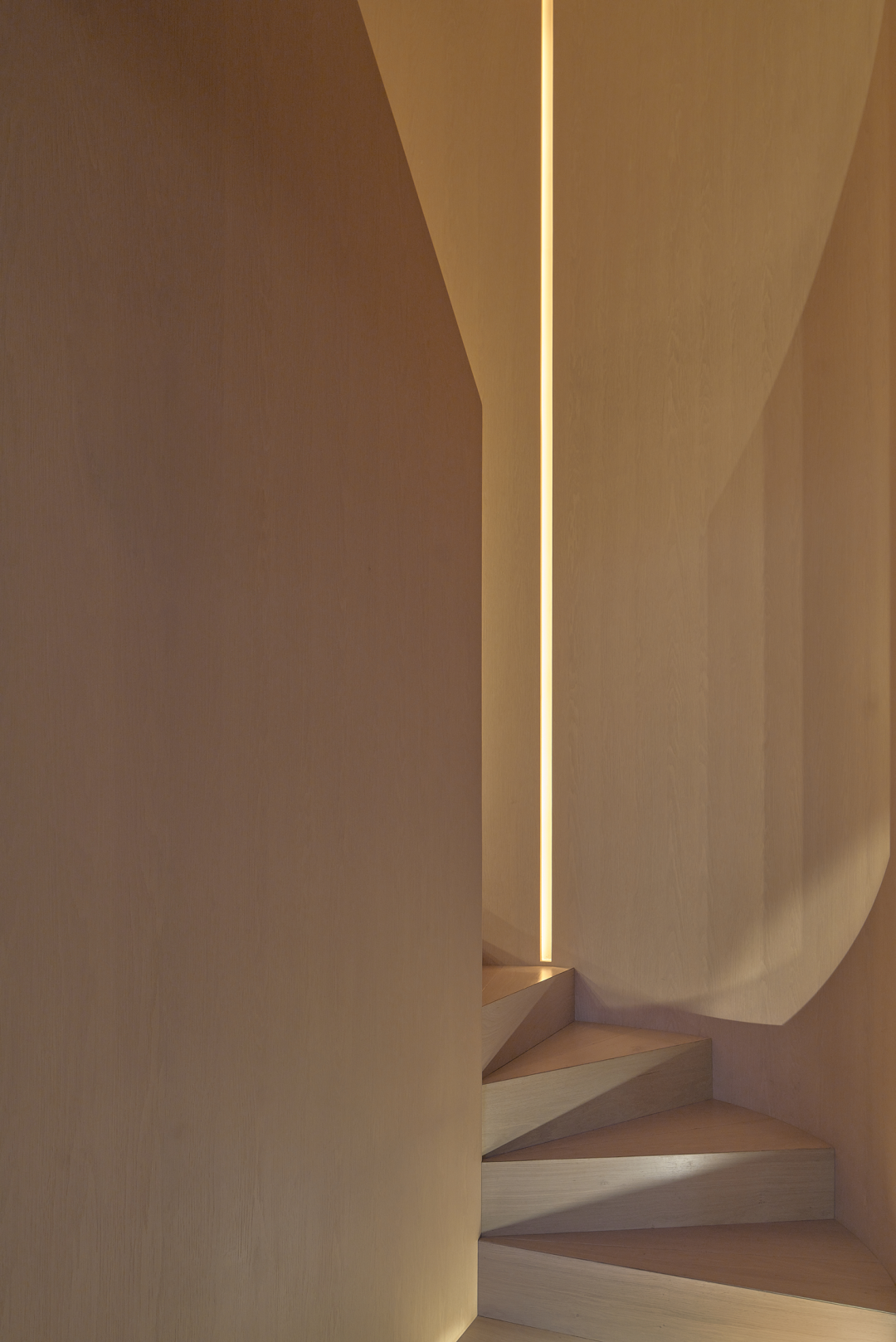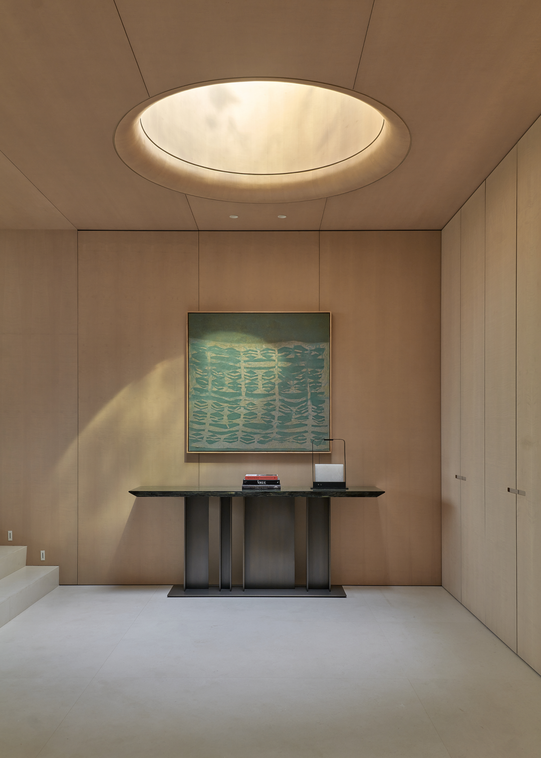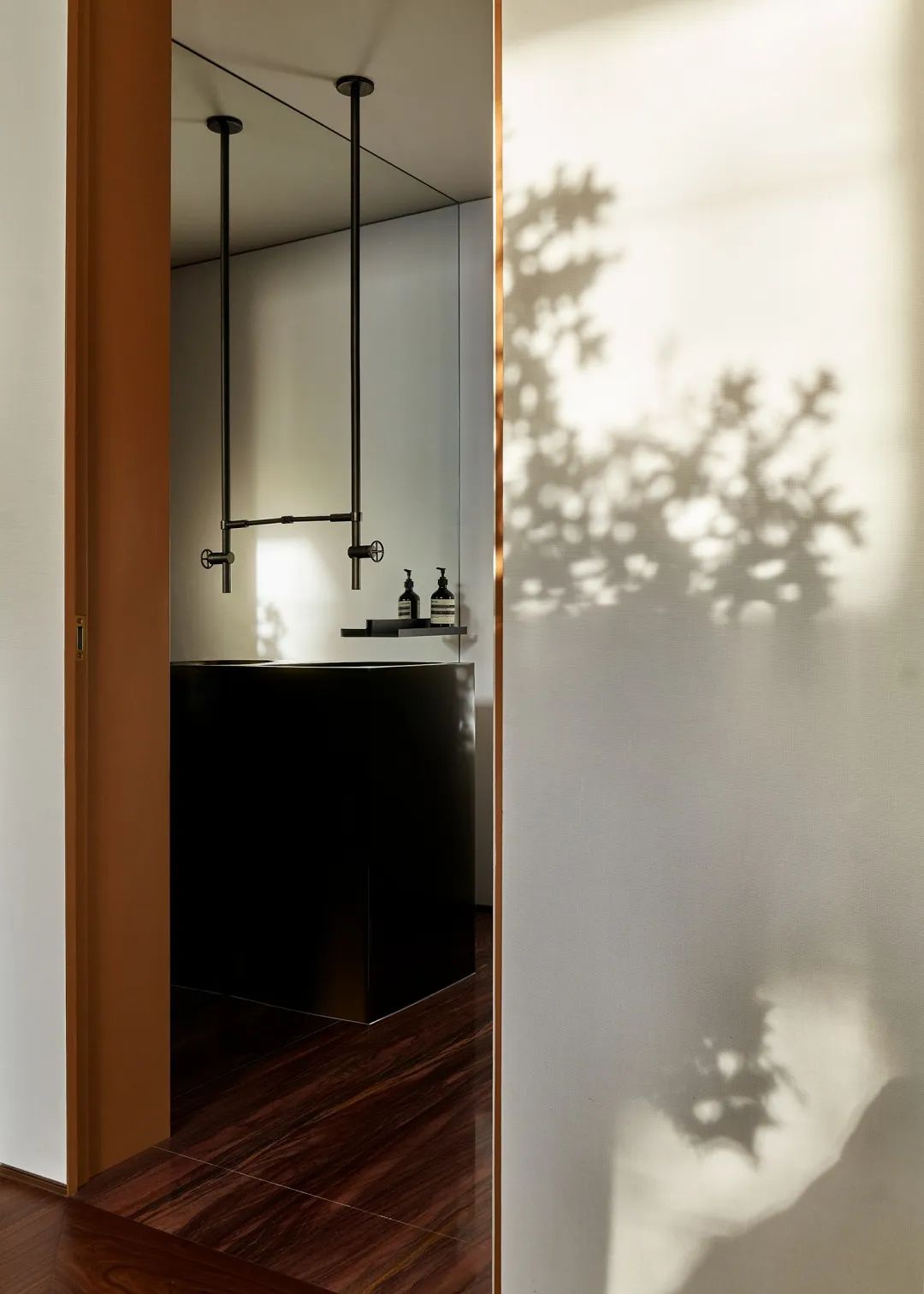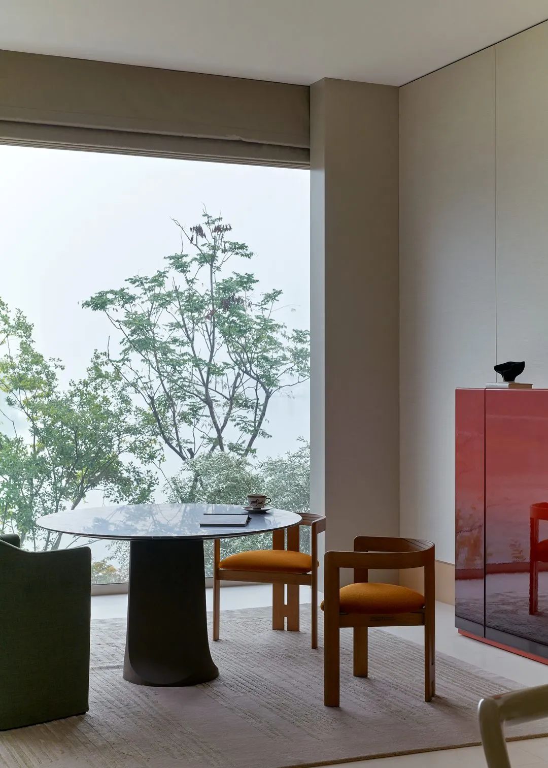 最初,业主想做一个下沉式的庭院,栽上一棵树。设计师说,您本就住东钱湖畔,山水之中,四周不仅已有大片的树,还有青山、秀水、鸟兽与四季……与其再种一棵树,不如直接将周围的风景,将一年的四时变幻,风雨阳光都拥入这个家的怀抱中。
