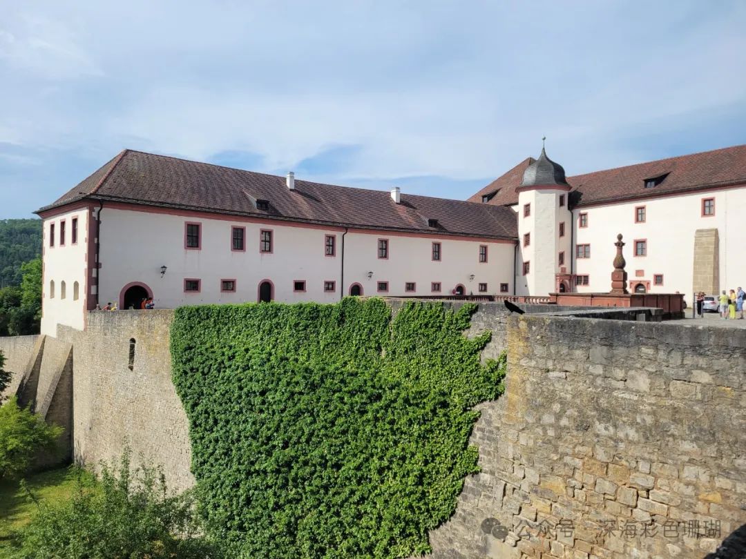 我们大约旁晚到达的Würzburg,可能时差还在有点累,就带着孩子在酒店楼下的河边吃点路上买的肉和面包,欣赏一下河对外玛利亚堡Marienberg Fortress。打算第二天一早就爬上去参观。