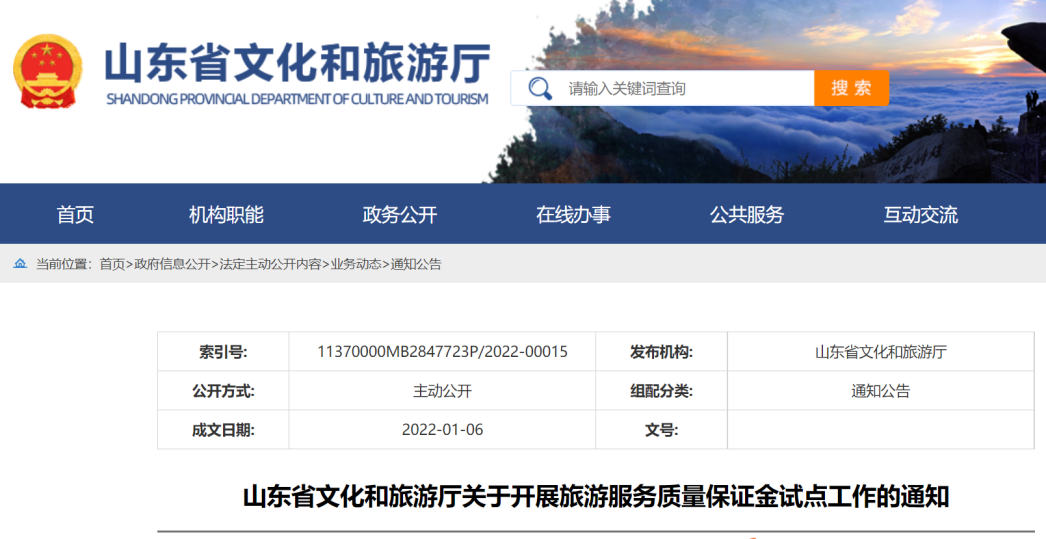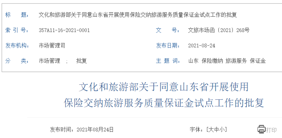 为贯彻落实党中央、国务院对受新冠肺炎疫情持续影响行业企业加大扶持力度的决策部署,支持旅行社积极应对经营困难,有效降低经营成本,推动旅行社经营全面恢复和高质量发展,根据《文化和旅游部 中国人民银行 中国银行保险监督管理委员会关于抓好金融政策落实进一步支持演出企业和旅行社等市场主体纾困发展的通知》(文旅产业发〔2021〕41号)、《文化和旅游部关于加强政策扶持 进一步支持旅行社发展的通知》(文旅市场发〔2021〕60号)及《文化和旅游部关于同意山东省开展使用保险交纳旅游服务质量保证金试点工作的批复》(文旅市场函〔2021〕268号),省文化和旅游厅(以下简称“省文旅厅”)决定在全省开展旅游服务质量保证金履约保证保险(以下简称“旅游质保金保证保险”)试点工作,现将有关事项通知如下: