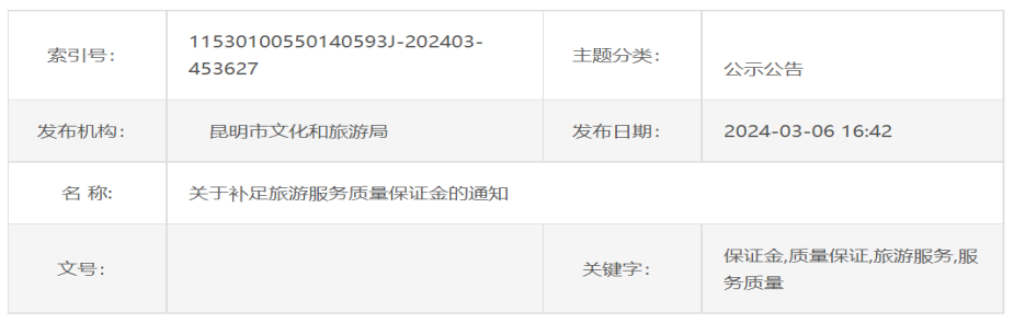 按照云南省文化和旅游厅《关于补足旅游服务质量保证金的通知》要求,现将补足旅游服务质量保证金有关事项通知如下: