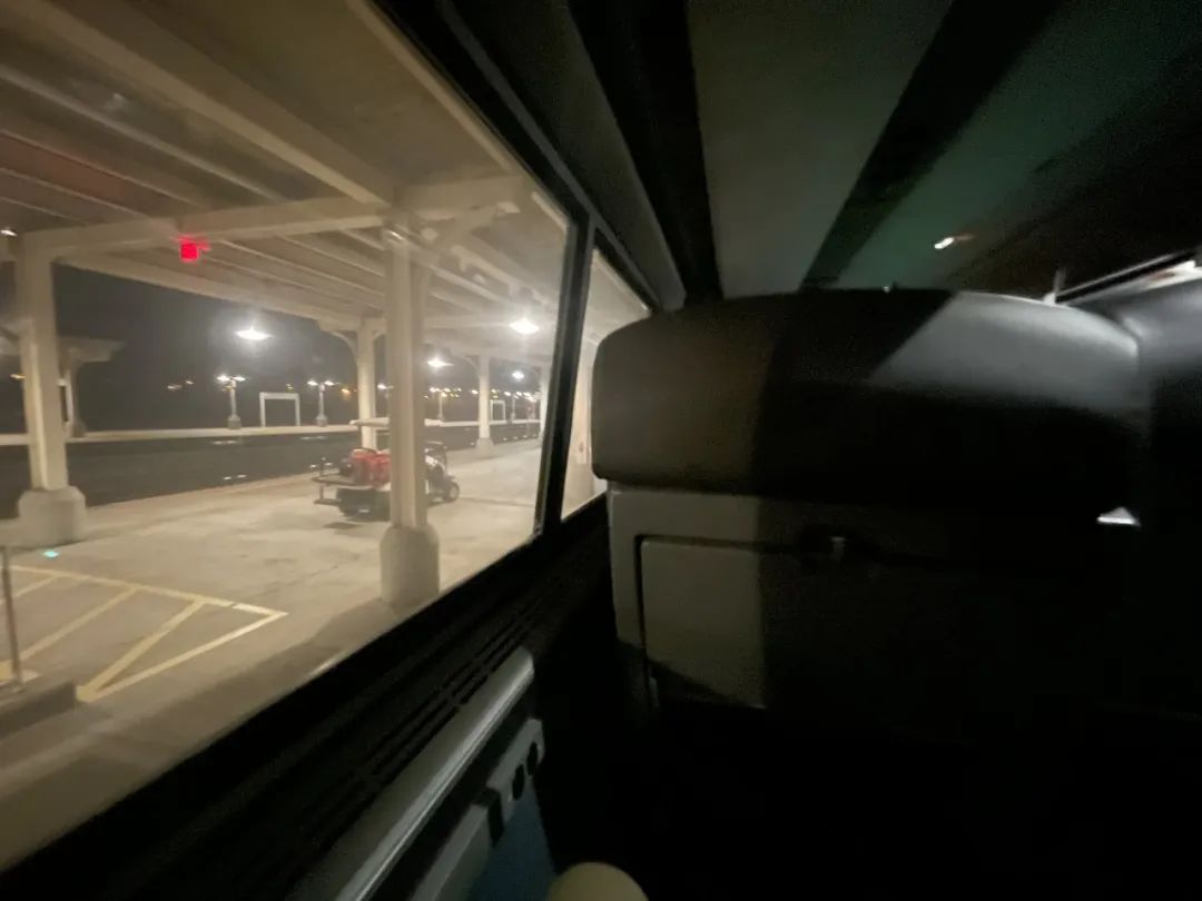 这不是我第一次坐着乘坐过夜火车,所以准备了旅行颈枕、耳塞、遮眼睛的帽子。普通座车厢离车头比较近,所以火车汽笛的声音还是比较响。车上睡觉还是比较舒服的,除了中间到站人上下车会被吵醒以外,我一直睡到了亚特兰大。
