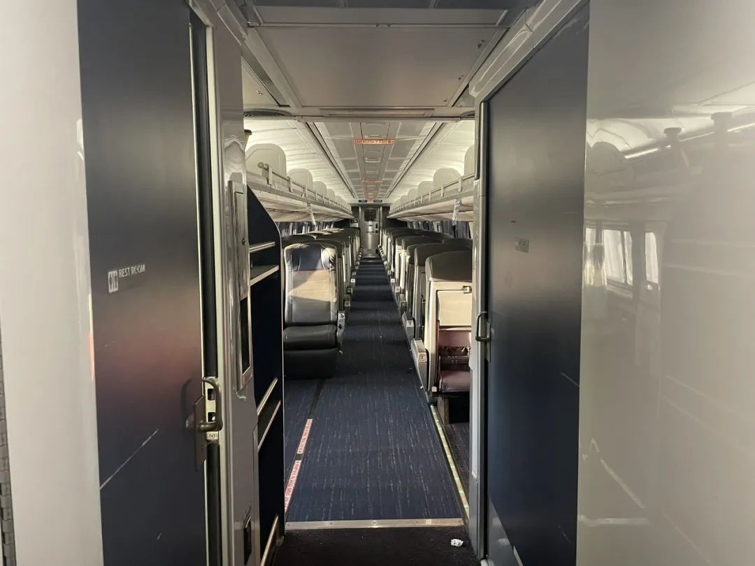 美铁有45条线路,每条线路都有自己独特的名字和悠久历史。我这次乘坐的“新月号”列车每日在纽约的宾夕法尼亚车站和新奥尔良的联合车站之间运营,长度2216公里,运营时间约32小时,经过阿拉巴马州伯明翰、乔治亚州亚特兰大以及北卡罗来纳州夏洛特等主要城市。“新月号”得名于终点站美国南部沿海城市“新奥尔良”,这座城市又被称为“新月城”。我在凌晨一点从格林斯伯勒上车,在火车上睡一觉后于早上八点到达亚特兰大。“新月号”的席位分三个等级,普通座、小卧室包厢和大卧室包厢,我坐的普通座。新月号列车