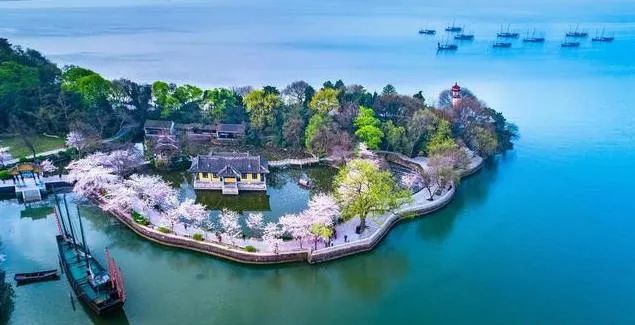 武汉东湖位于湖北省武汉市武昌区,是中国最大的城中湖,面积33平方公里,约等于杭州西湖的六分之一,是以观光、休闲为主要功能的旅游景区。东湖三面环水、烟波浩渺、岛屿棋布、群山层叠,风光秀丽宜人。春季赏花的最佳时节在每年的3-5月之间,其中以桃花和樱花最多最美。鼋头渚是一个风光秀丽的天然湖泊,素有“太湖第一景”之称。