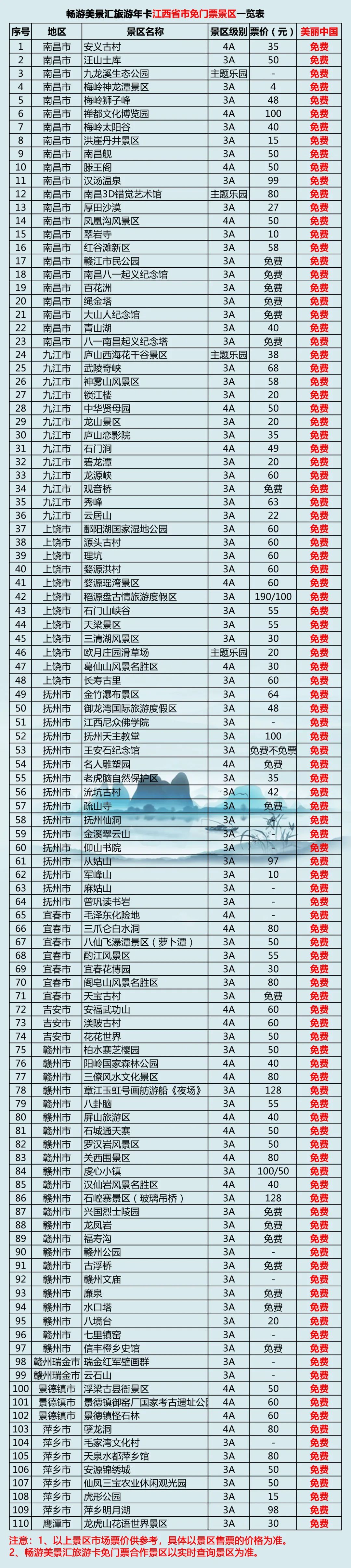 畅游美景汇旅游卡全国旅游一卡通,江西旅游景点参考一览表,以实际在线景区查询为准