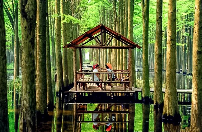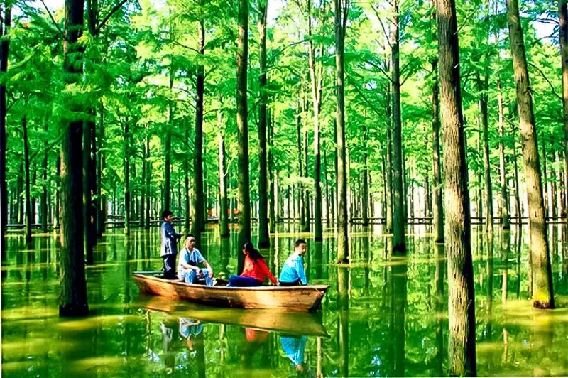 D2:早餐后乘车赴兴化车程1小时左右,游览【千垛菜花风景区】(约2.5H),登20 米高的观光瞭望台,极目远眺,千百垛田漂浮于水中,云蒸霞蔚,煞是壮观。金黄色的油菜花盛开于垛田之上,犹如一朵朵祥云飘舞于水面,又似一片片流霞散落在人间。人们置身于一望无际的千垛菜花间,感受随风而来的醉人菜花香,有心旷神怡之感、美不胜收之慨。乘坐小木船在小岛间穿梭,亲闻油菜花香等;尽情畅游花海之中,不禁让人惊赞“中国最美油菜花海”的壮阔景 色。中餐后游览江苏省最大的人工生态林【李中水上森林景区】漫步水上森林公园,呼吸森林氧吧,探李中水上森林具有特色和代表性的景点【水上九寨沟】曲折的杉木小桥,简朴的林中小亭,漫步其上,水林幽清,溶和成大自然的天然绝景,景区森林主要以池杉为主,白鹭、黑杜鹃、野鸭等鸟类常年栖息其中。园内水系丰富,河道纵横,形成了“河流回环,水杉林立”的景观。李中水上森林是天然的生态氧仓,是都市人回归自然、休闲度假的好去处。林间最具特色的游玩项目是“木筏漂流”,游客乘一片木筏,缓缓划行于密林的沟汊间,会蓦然惊起林间水滩上栖息的水鸟,扑楞楞的飞起而去,令游人领略无限野趣;水上森林的景点还有“森林迷宫”、“闻莺桥”、“落鹜亭”等!后乘车返回青岛。