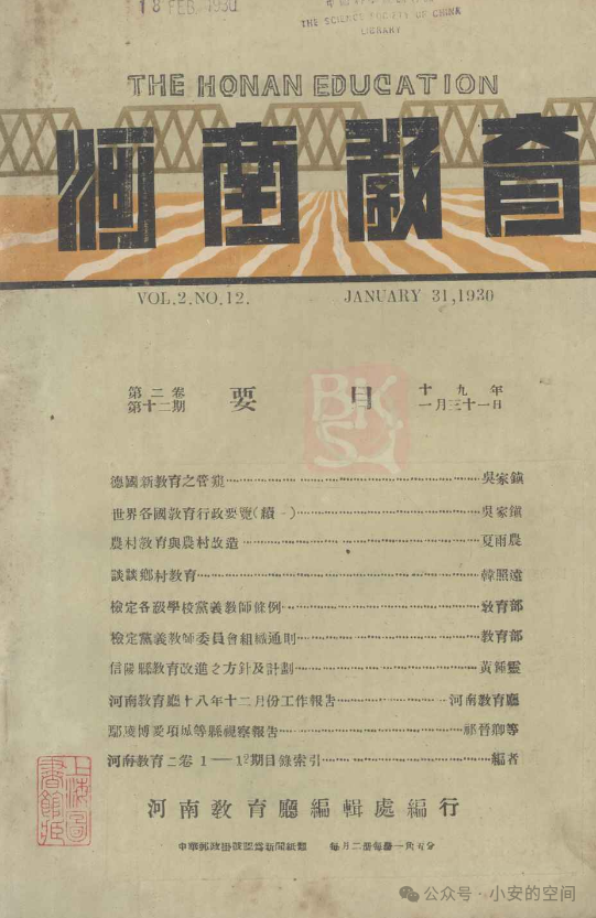 1930年河南教育厅编辑处编行的《河南教育》