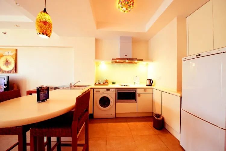 所有客房面积64平米起跳,客房均有大阳台,配备自动烘干洗衣机、电冰箱;简单厨房设施,免费提供所有厨具、餐具。