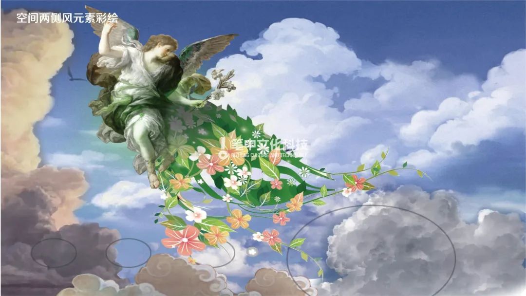 风神主题彩绘,通过大型风神主题彩绘讲述埃俄洛斯与8大风神的故事,给游客以震撼感受,并置身于天空之城的神幻游乐之旅;