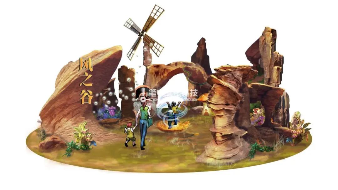风之谷——设计元素以风侵蚀的山石为元素构成,游客犹如穿梭在风谷中一样,感受风的力量。