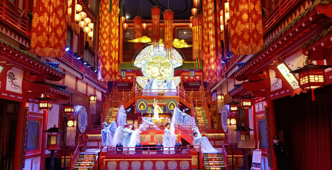 数字科技在该空间中发挥了重要作用,例如,工作站为艺术作品的设计、制作和调试提供了数字创作和编辑的工具,激光投影机的使用可以将艺术作品投影在各种复杂的空间表面上,传感器设备用于捕捉观众的动作或环境的变化,实现观众与艺术作品的互动。作为全国首个沉浸式唐风市井文化生活街区,长安十二时辰主题街区自开业以来,日均游客接待量7000人次,累计接待游客量超过100万人次,实现全网曝光量总计75亿次,长安十二时辰主题街区以不俗的成绩提振了文旅行业的信心和西安文旅经济的市场热度。 街区通过在2.4万平方米的商业空间内注入电视剧《长安十二时辰》IP与唐文化元素,打造出集全唐空间游玩、唐风市井体验、主题沉浸互动、唐乐歌舞演艺、文化社交休闲等为一体的新消费场景,再现唐朝都城长安的独特风情。长安十二时辰主题街区在开发上遵循文化复刻、经济释放及沉浸体验的原则,街区从演艺、场景、NPC互动以及利用物联网、移动互联网、人工智能以及大数据等建成可视化的运营管理平台,实现了智慧化、可视化管理。