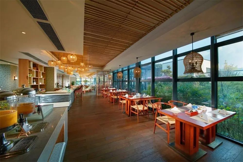 以低容积率的特色小木屋与绿色如茵的芳草地为核心,酒店拥有分布于竹林、茶园及草坪的各类客房178间/套。无论是温馨惬意的木屋别墅,还是宽敞舒适的主楼标准客房,隐逸于山丘绿荫中,自然芳华推窗而入。