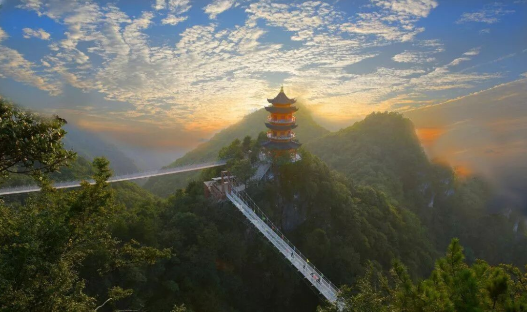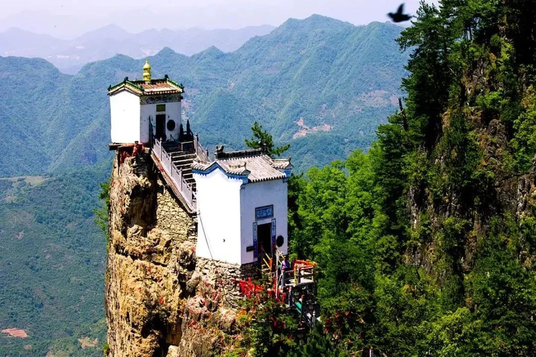 【塔云山金顶】金顶金鸡独立,奇绝天下;它的神奇与奇妙,堪比埃及的金字塔。金顶支架在4根巨大人凿青石之上,但4个支撑金顶的长青石,究竟从何而来呢?又是如何运到这万仞绝顶之上的呢,是天造神设,还是人力所为?天造神设过于虚幻,人力搬运又不大可能,于是,在塔云山,就形成了众说纷纭的神奇传说,更形成了一个等待破解的千古之谜。塔云山是驰名秦、鄂、川、豫等地的道教名山,位于镇安县城西35公里的柴坪镇境内,主峰金顶海拔1665.8米,形似宝塔,直耸云端,素有“金顶刺青天,松海云雾间”之美誉。在2011年度中国最美潜力景区评选活动中,塔云山景区当选中国最具潜力的十大道教名山。中国道教协会会长任发融题词高度评价塔云山:“秦岭第一仙境,天下最险道观”。