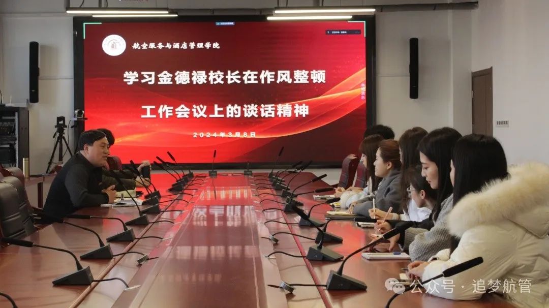 航空服务与酒店管理学院组织学习“金德禄校长在作风整顿工作会议上的谈话”精神