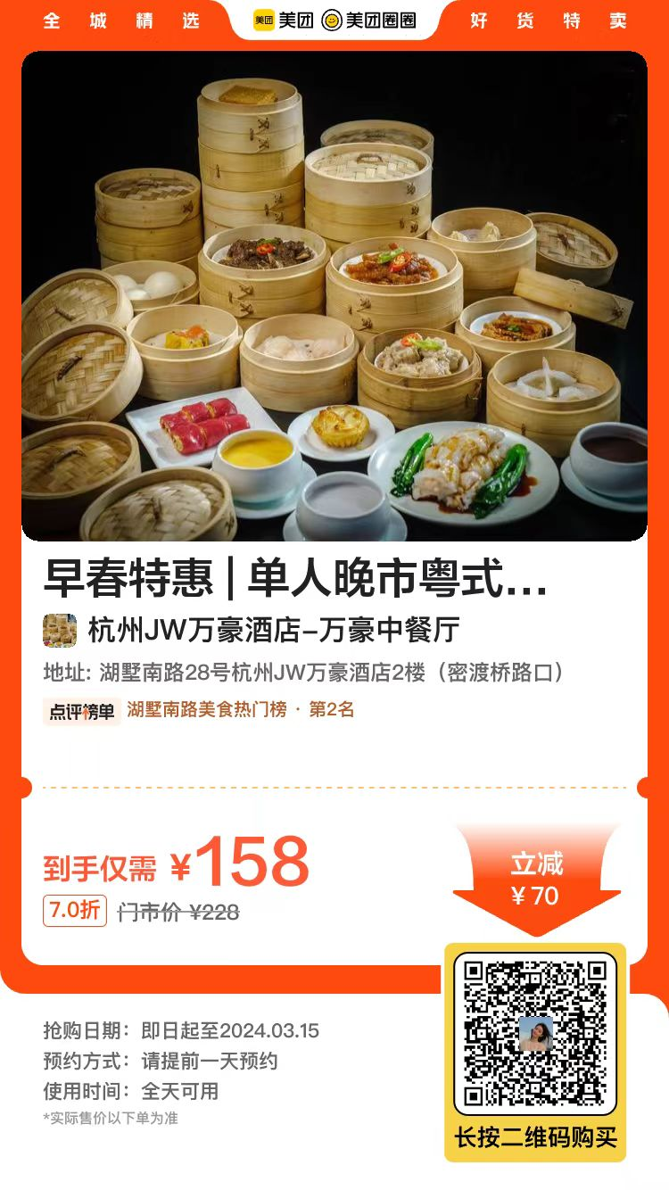 您现在的位置是:首页 > 国内旅游目的推荐 > 正文 国内旅游目的推荐 【杭州JW万豪酒店-万豪中餐厅】仅需158元享早春特惠 | 单人晚市粤式点心自助 admin2024年03月09日 15:30:14国内旅游目的推荐126 【长按二维码购买】【长按二维码购买】 转载请说明来源于"旅荐网",部分内容转载自网络,如有侵权请联系qlwl@foxmail.com删除 本文地址:https://www.15386.cn/post/19388.html 上一篇 航空服务与酒店管理学院组织学习“金德禄校长在作风整顿工作会议上的谈话”精神 下一篇 泰山旅游路线解析 相关文章 终于有人把安徽旅游说明白了 宿迁宿豫区必打卡景点攻略推荐十大,一天热门全攻略! 新疆旅游避坑指南|收好这份干货,玩得省心又省钱! 2026美加墨世界杯旅游与观赛指南 清明假期出游指南|赴一场春日与烟火的约会 3天假期怎么玩?潍坊景区游玩指南来啦→ #新疆旅行攻略 #原创图片 #创作分成计划 跟着“吴越杯”游金华!五大主题线路游玩攻略请收好→ 西班牙旅游攻略,10~20日自由行路线 江苏·启东—两日游旅游攻略 发表评论 取消回复 评论列表 这篇文章还没有收到评论,赶紧来抢沙发吧~