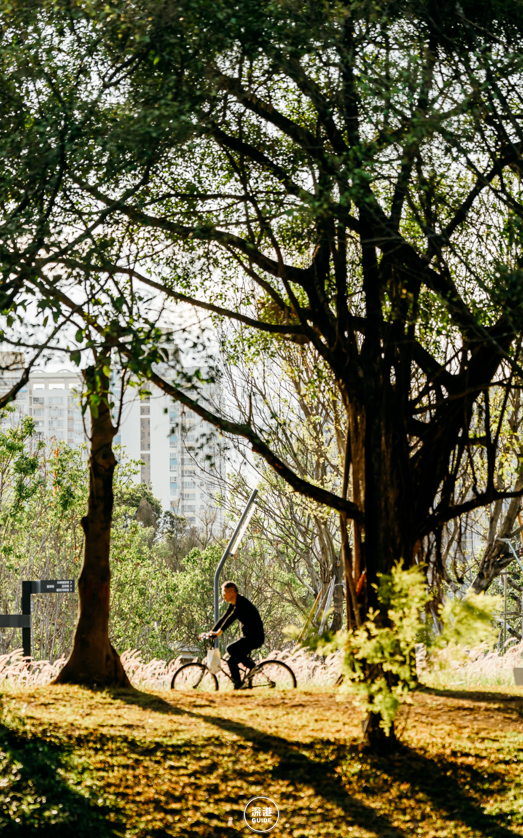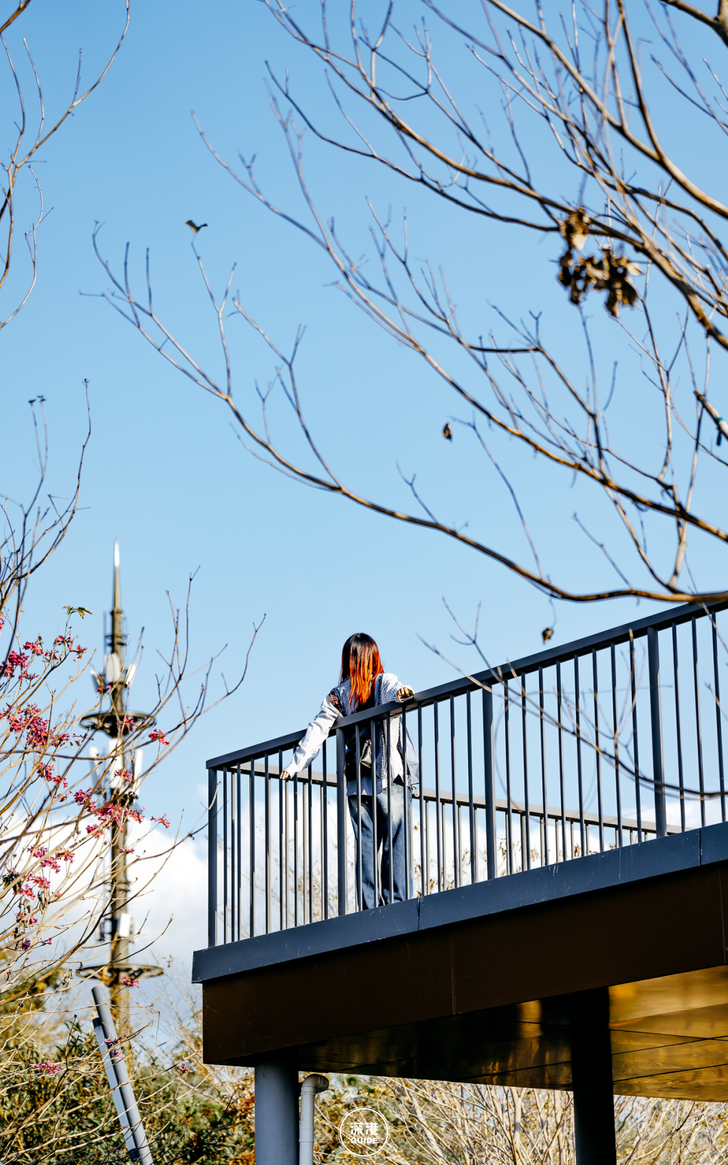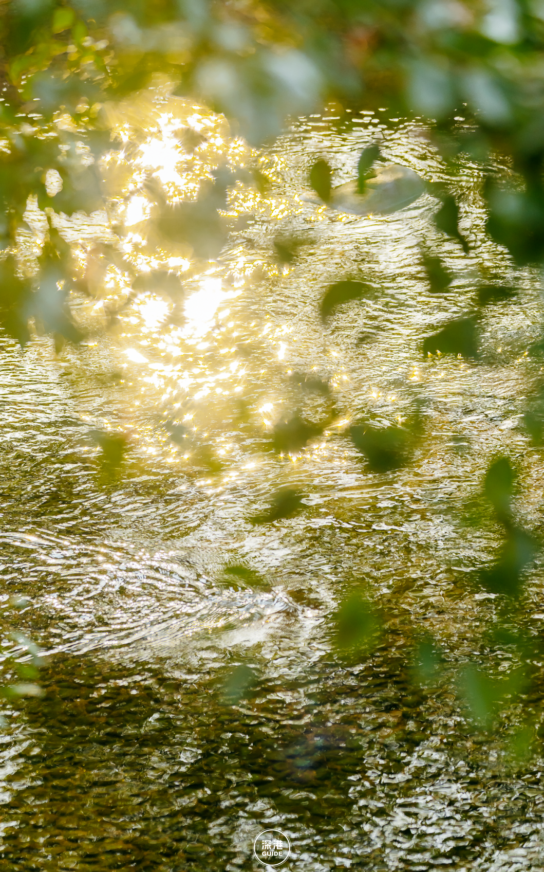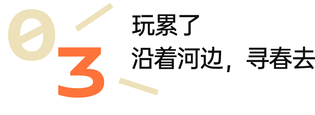乐园对面就是笔架山公园南门,游玩结束可来此顺着河边逛逛。日落前阳光将河道包裹,树影斑驳,波光粼粼,无论处于哪个位置,都能捕获光里的无限春意。