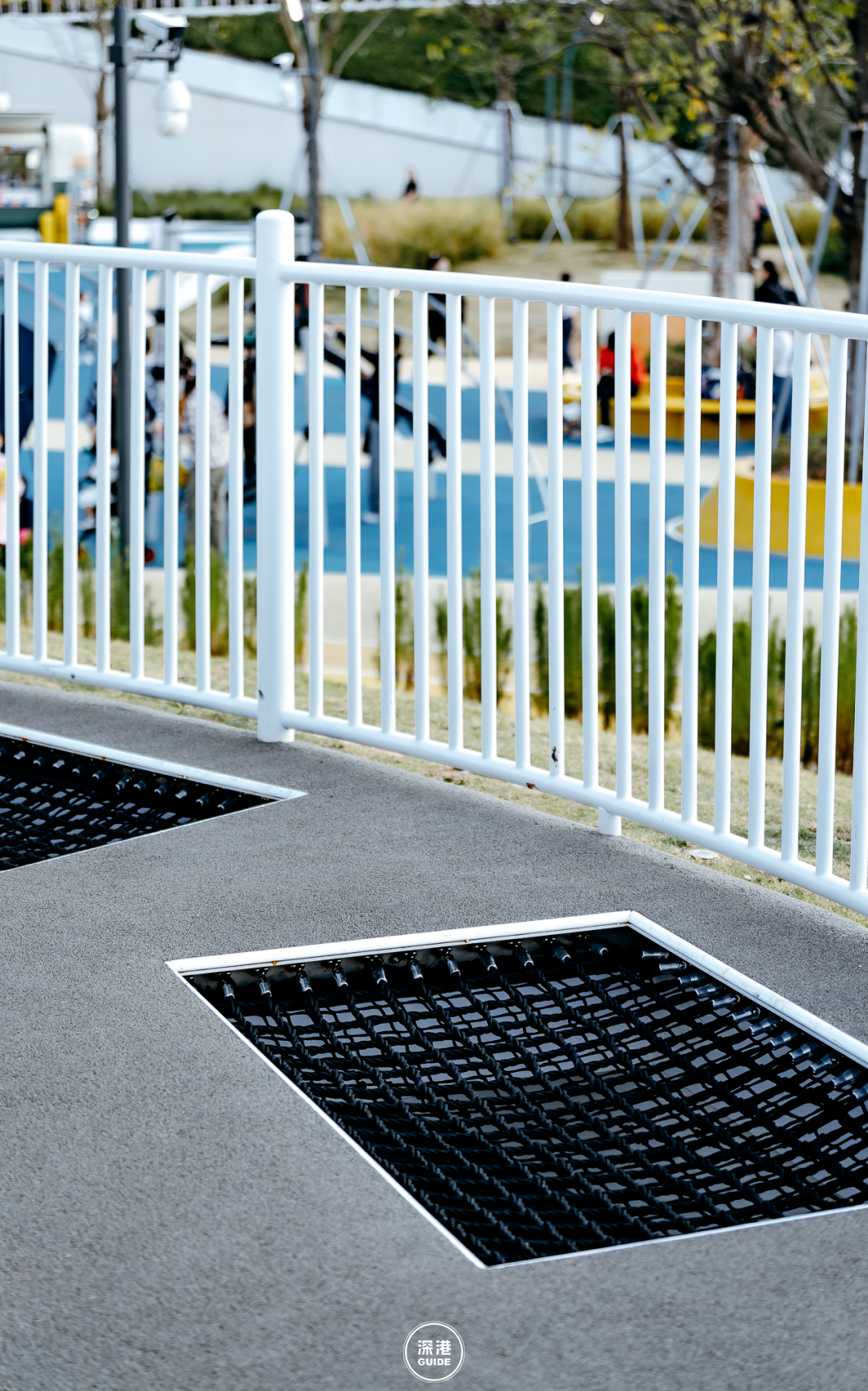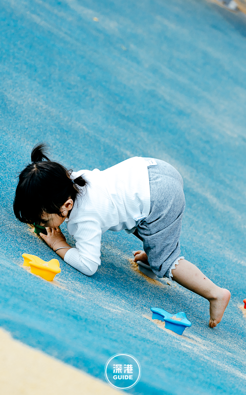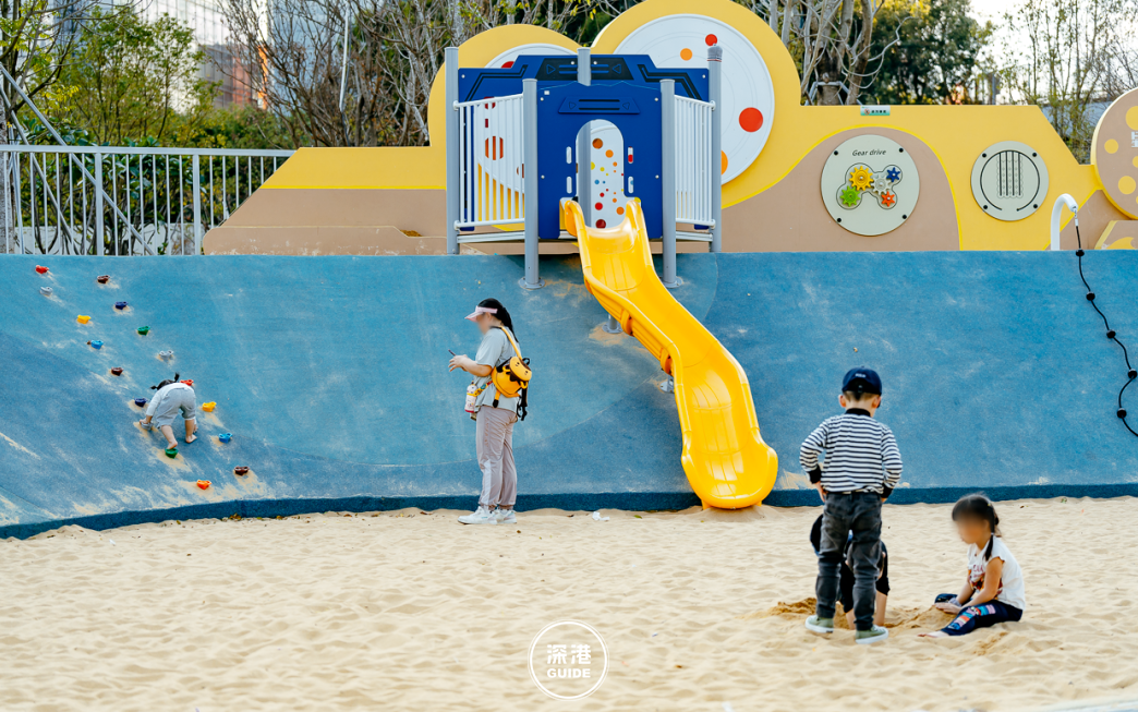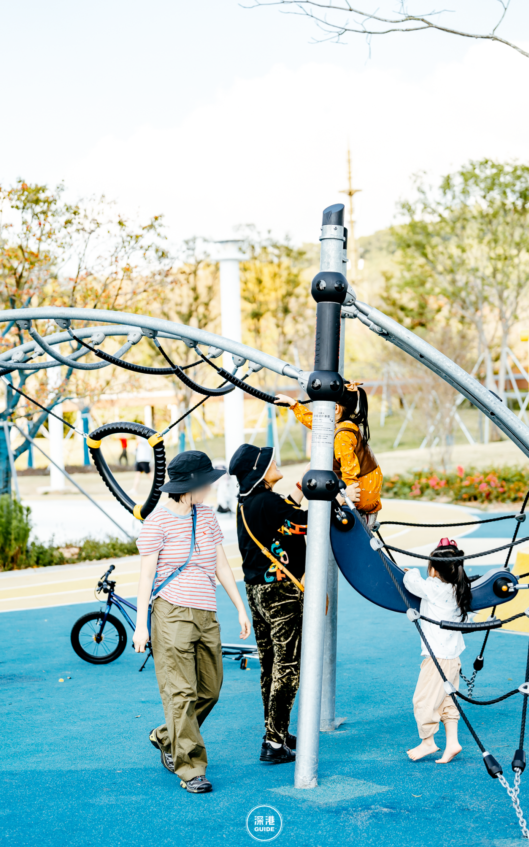 乐园内和旁侧的桥底分布了多个攀岩及爬网区,适合不同年龄段的小朋友。若童心未泯想寻找小时候一鼓作气爬坡的兴奋和成就,蓝色斜坡可以小小满足下各位大朋友~