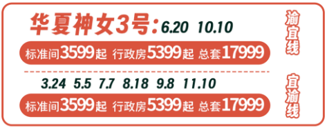 如果你也有被文章打动,就来坐船吧~这艘游轮叫“华夏神女3号”,今年的专列航次如图所示,最近的一班在3月24号还有少量位置可约,此行不亏,不是说说而已,会让你切身感受到~