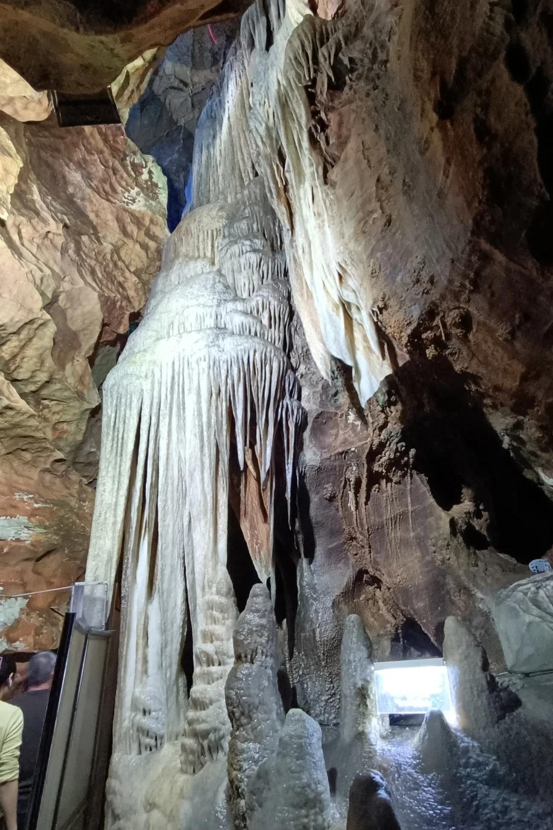 游玩完回到游轮,还收到了磊哥的礼物,当地名产——脐橙,非常新鲜,味道也特别好,感谢磊哥的礼物,作为磊哥粉丝很幸福、很暖心。经过又一晚的航行,第四天我们到达了丰都县,开启了第四天的游玩。上午是去船票自带项目——雪玉洞,游轮停靠码头,大巴车接我们去雪玉洞景区,配备的导游在行车过程中也会沿途讲解。景区到洞口需要爬缓坡道,沿路有猴子,导游会告知注意事项。洞里需要走台阶,比白帝城台阶多一点儿,洞里行走空间不大,一点儿不冷,恒温湿度大。中午准时送回游轮吃午饭,下午没有报自费项目,睡个午觉,然后喝喝下午茶,悠闲的享受游轮生活。晚上按管家要求,将大件行李送到二楼指定位置,因为作为粉丝团,有行李搬运这项服务,明天早上船到重庆朝天门码头时,有师傅会将我们的行李搬运到好高的台阶上,我们自行走上去,然后领取行李。