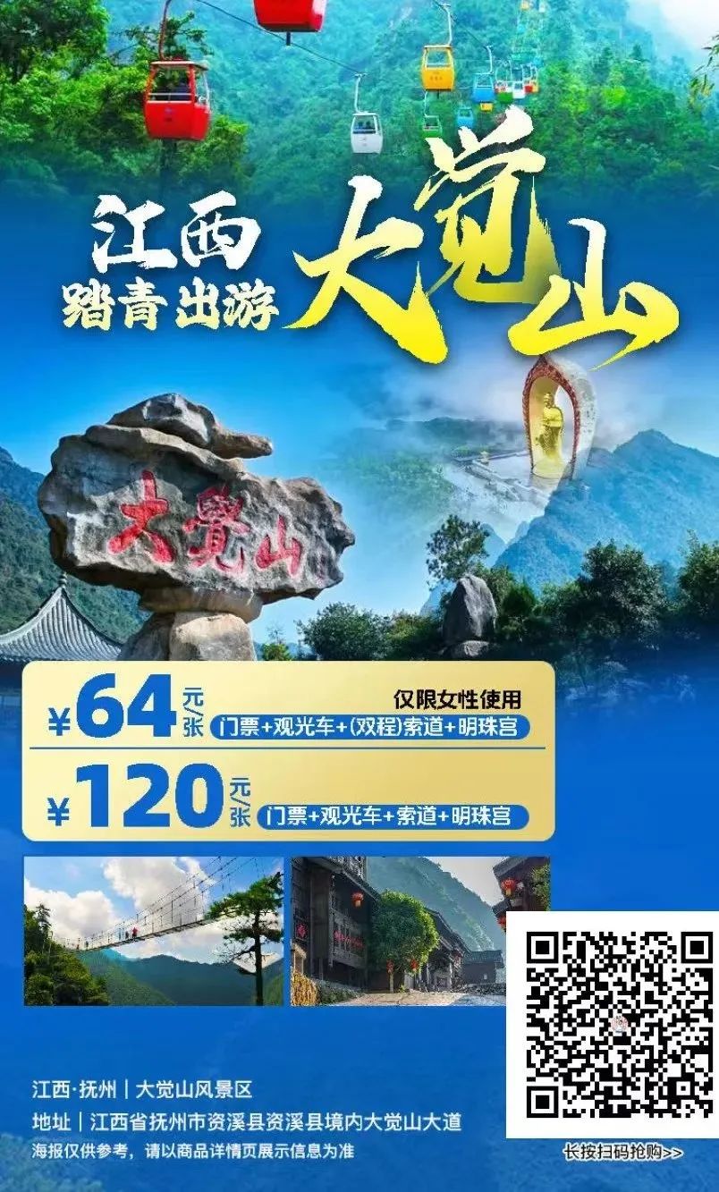 64元起抢【江西大觉山风景区】门票+观光车+索道+明珠宫套票,悠闲赏春景的必打卡处,既能看山水风光也能玩乐享受趣味!