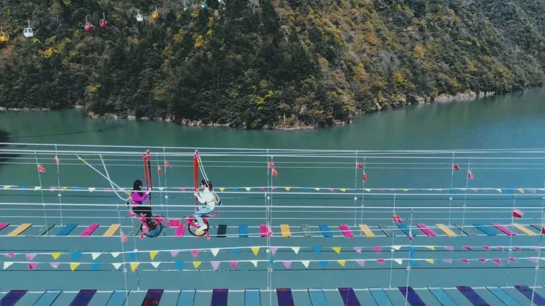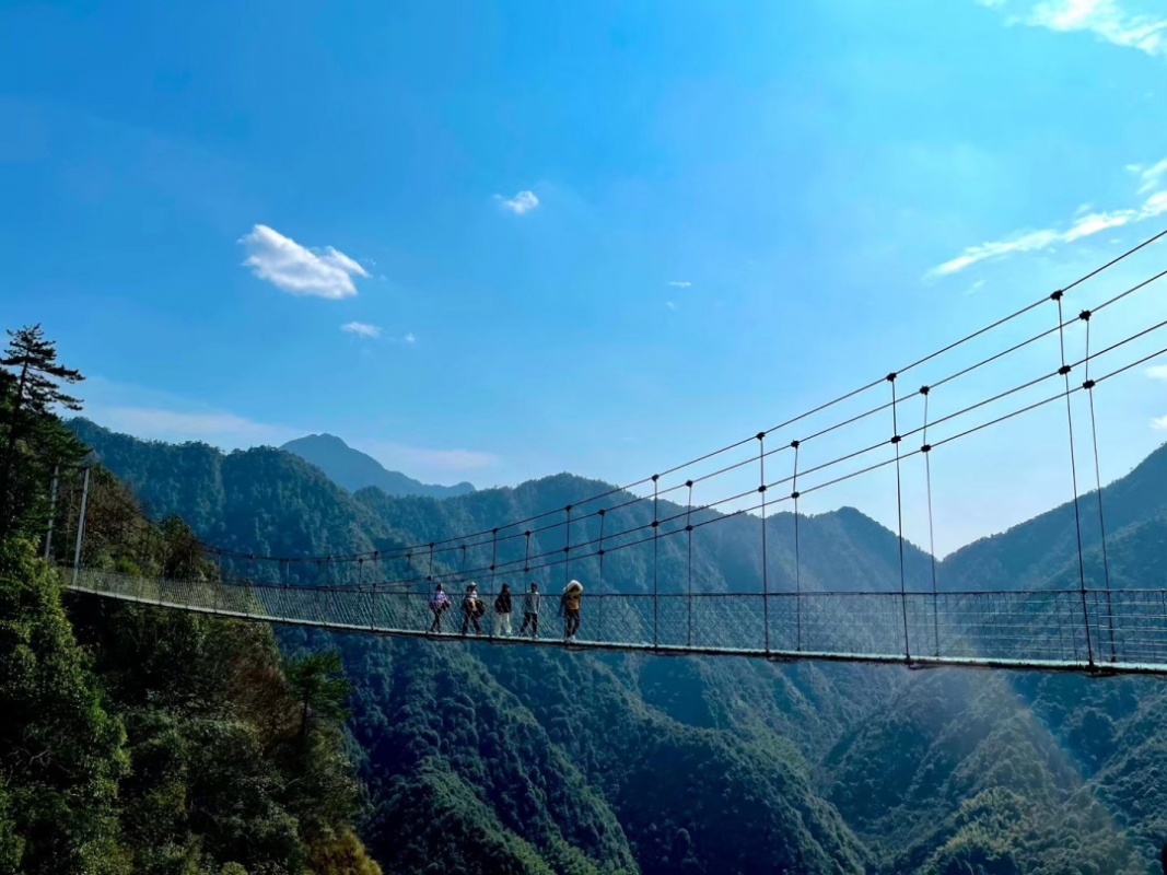 下了索道踏上太空步廊每走一步都能看到另一个角度的山峦