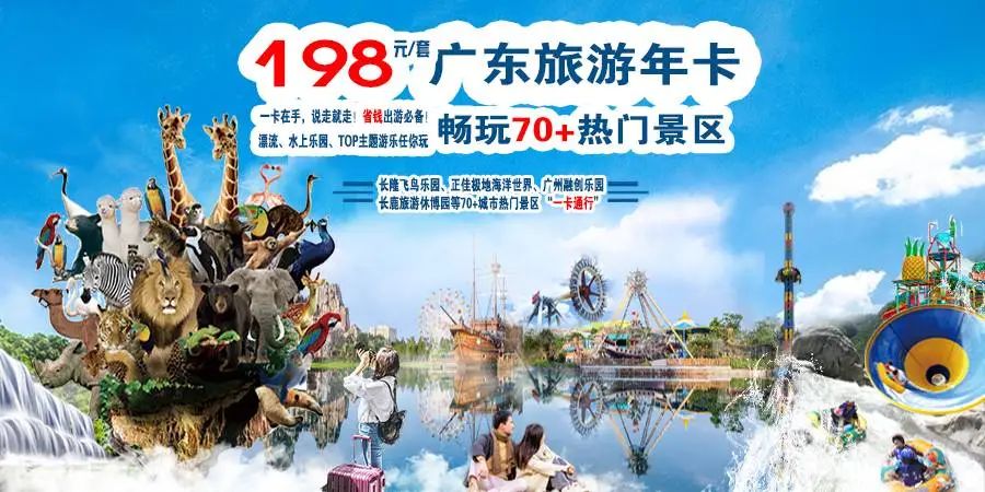 【一卡畅玩广东70+家景区】仅售198元「广东旅游年卡」含广州正佳海洋馆&雨林馆/长隆飞鸟乐园/佛山长鹿农庄/深圳观澜山水田园等