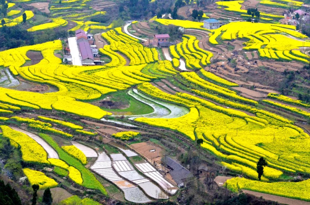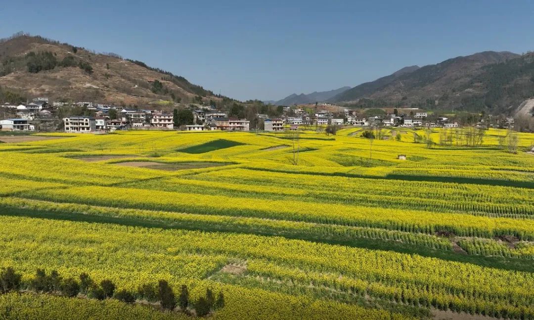 观花线路全长70余公里,途经汉源街道办、九台观、羌族文化产业园、巴山石羊栈梯田、毛坝河草川子风景区,油菜种植面积近2.5万亩。