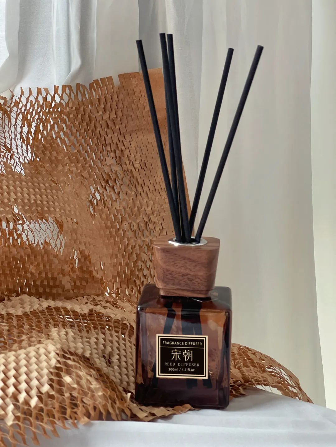 咖啡色的瓶身,简洁的方型设计,玻璃材质,手感圆润光滑,光感优雅柔和,一瓶香薰就能让人沉浸在如同酒店般氛围中!