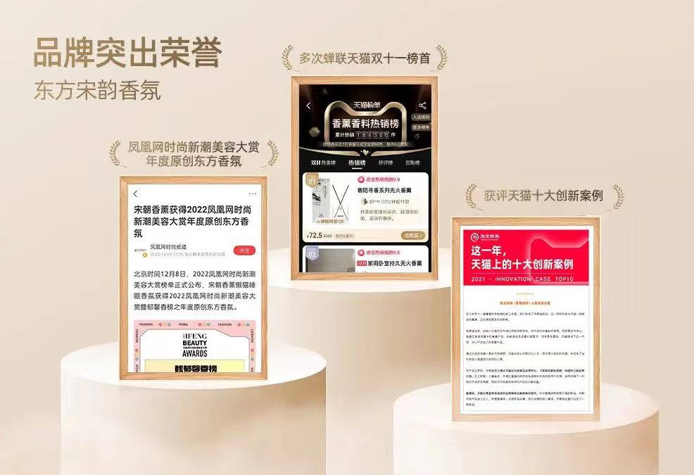 宋朝香薰近几年斩获多项荣誉,获得各大平台以及知名媒体的肯定!🥇荣获2022凤凰网时尚新潮美容大赏年度原创东方香氛与中国国家版本馆,德寿宫,南宋历史博物馆等多个文化ip合作,共同铸就展现宋韵,重现临安城繁华的金名片!诺贝尔获奖者——芬美意集团与奇华顿、罗伯特等国际top级别香料大厂,同时也是香*奈儿、宝G丽、古*驰等奢侈品香水供应商!令人惊喜的是,它家的香氛顾问是祖*珑前首席调香师,连供应商都跟一线大牌用的同家——“百年香料巨头”瑞士芬美意!调香师FRAN BROWN在祖*珑期间推出了蓝风铃、英国梨和小苍兰等多款知名香水!