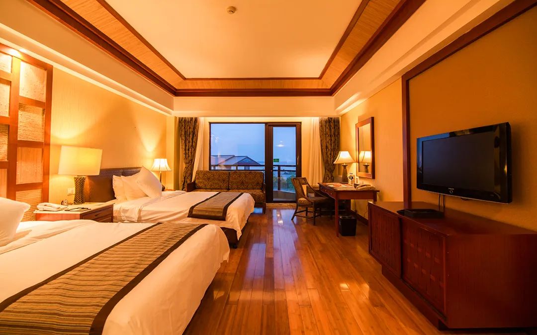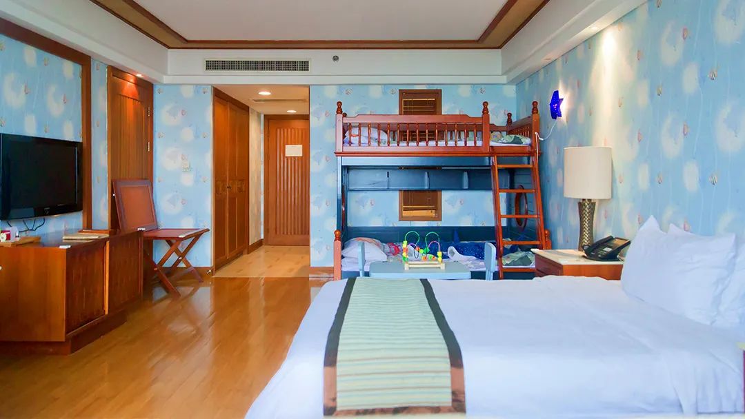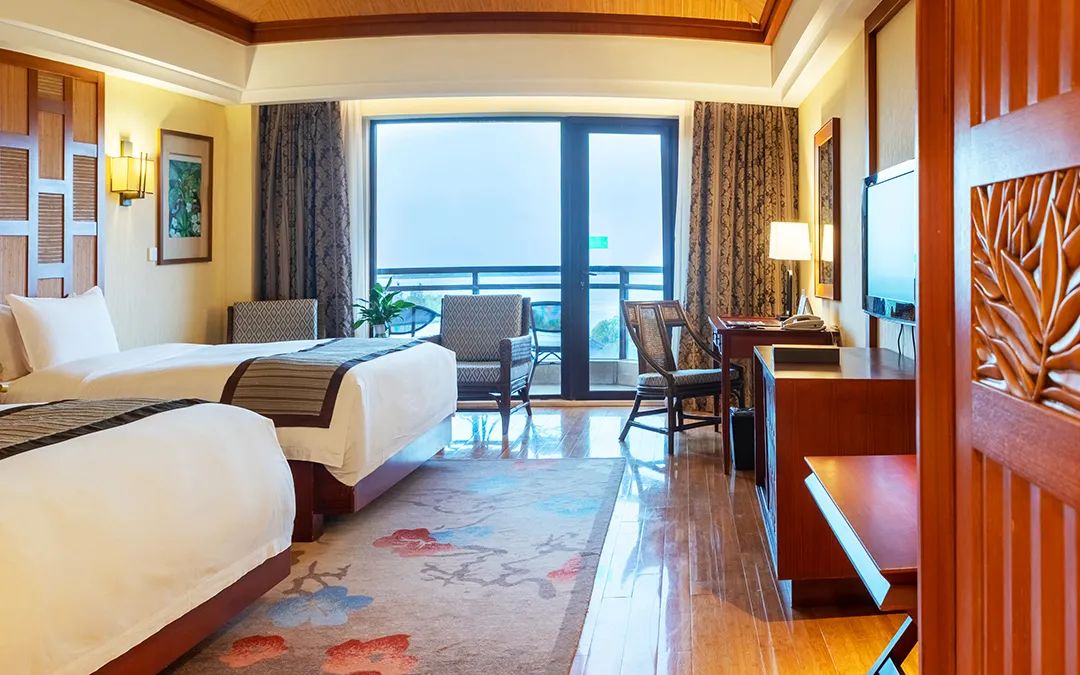 ▲视房态免升后的豪华湖景房(45㎡,双床,床宽1.5米,二胎家庭放心睡)