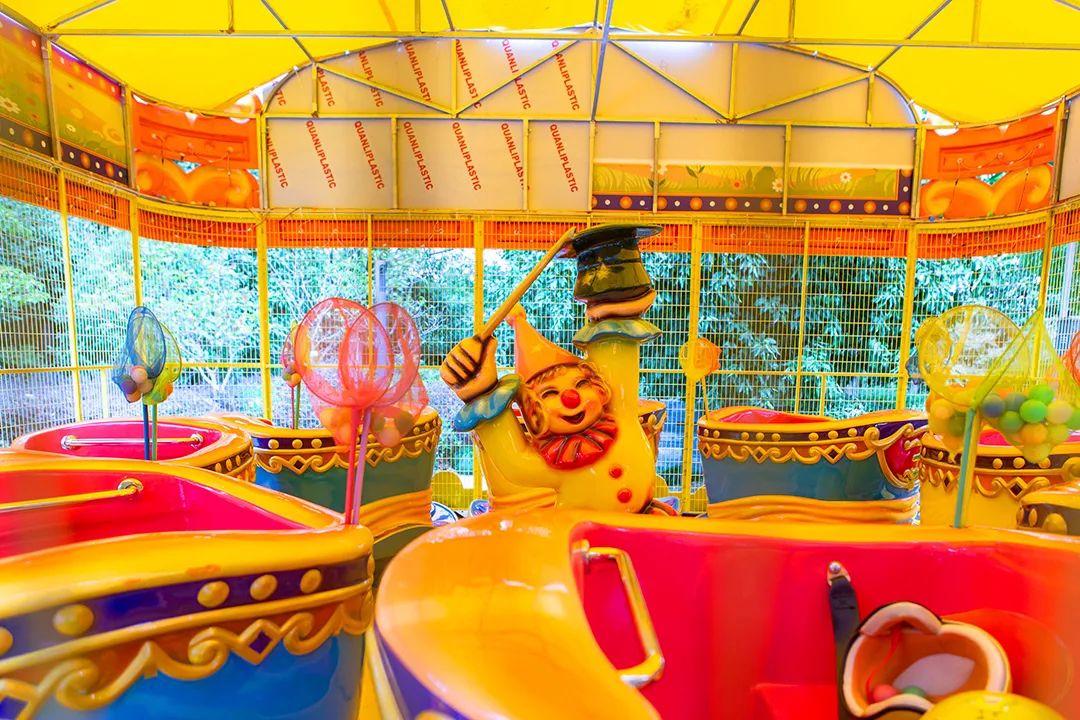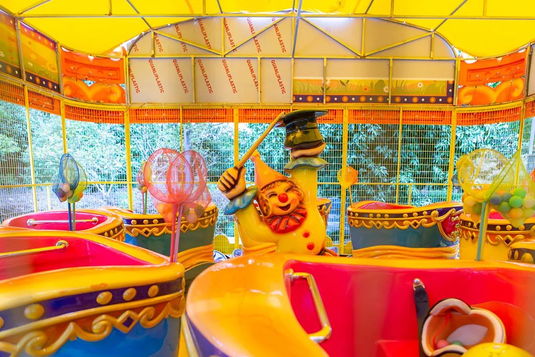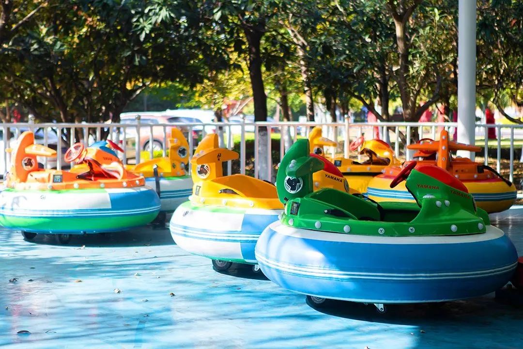 室外有小动物园、儿童乐园、碰碰车、旋转喷球车…