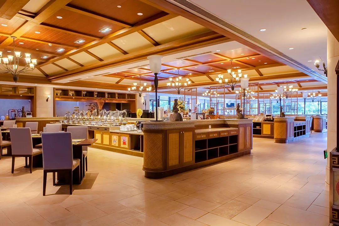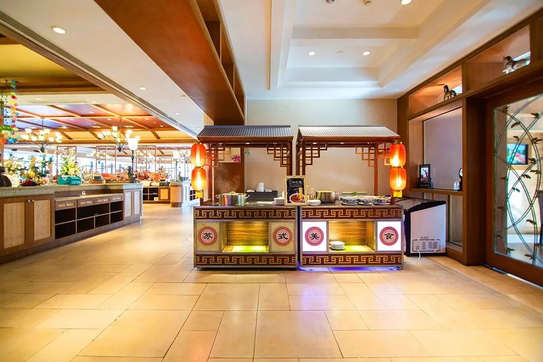 酒店设有大堂吧、现代与古艺为一体的有景阁中餐厅及澜西餐厅,为宾客提供各式风味美食以及苏式与阳澄湖特色美食。