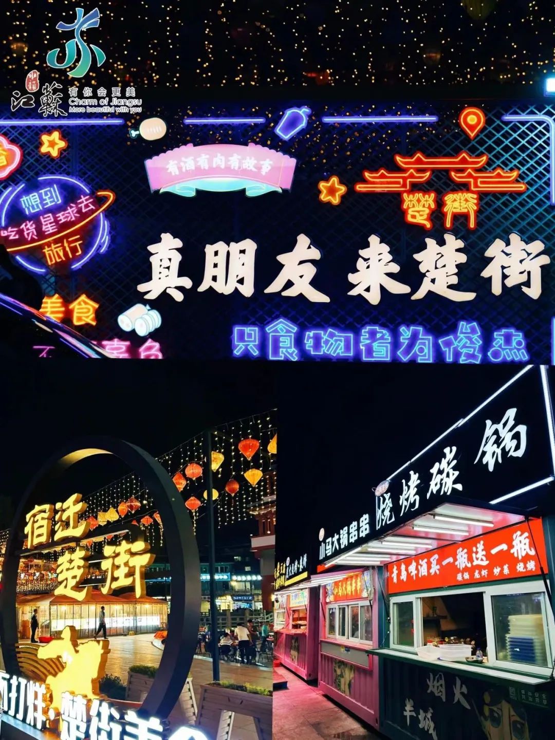 楚街中有古色古香的建筑,一盏盏耀眼璀璨的灯笼,环境十分不错。与朋友前来,这里有网红甜点、轻食简餐、地道本地菜……丰富多样的美食可供选择,品尝宿迁的特色美食,在谈笑间享受生活的美好。