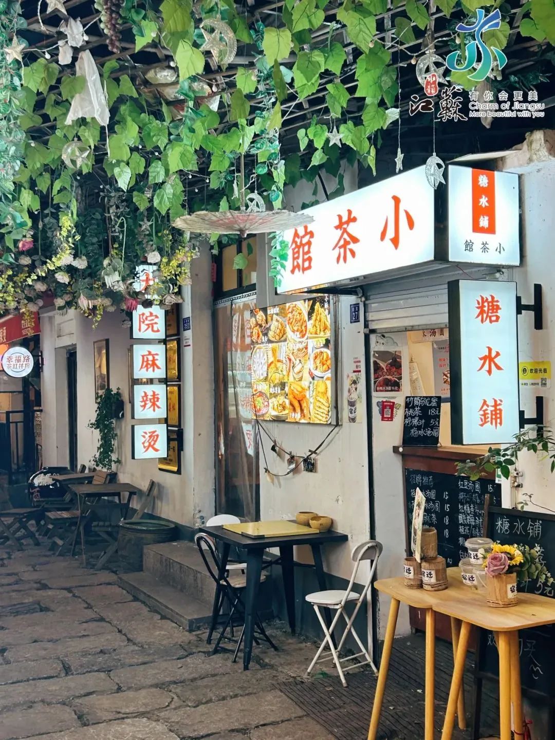 步入新盛街,走过蜿蜒曲折的街巷,看一个个灰墙黛瓦的建筑林立,在蓝天白云之下,与远处的高楼交错,宛如一幅古今辉映的画卷。可以穿一身古装来此打卡,与祈福楼合张影,在小巷子中回眸,随手一拍就是惊艳美图。