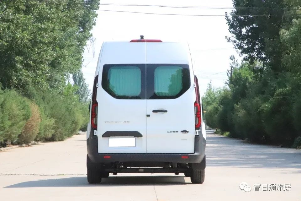 新车依然选择的是在可塑性强又小巧的福特全顺中轴中顶车型基础上打造而成。底盘轴距3300mm,外形尺寸长不到5.4米,宽不到2米,高不到2.4米,整备质量2800kg,最大总质量3500kg。