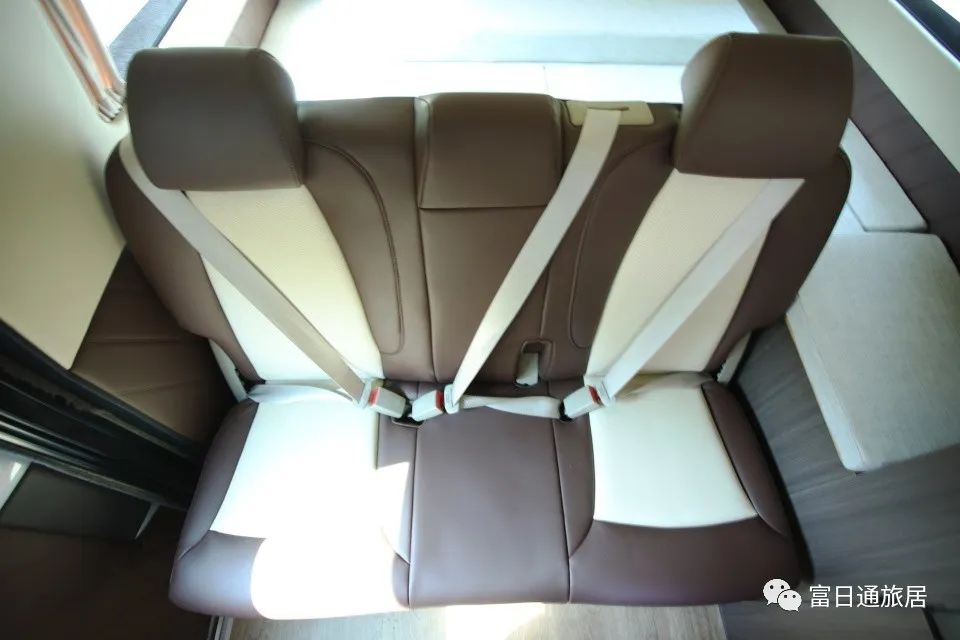 中排安装一张3人座椅,与主副驾驶座椅和便携式壁挂桌可组成对卡座布局,提升休息中的互动性。