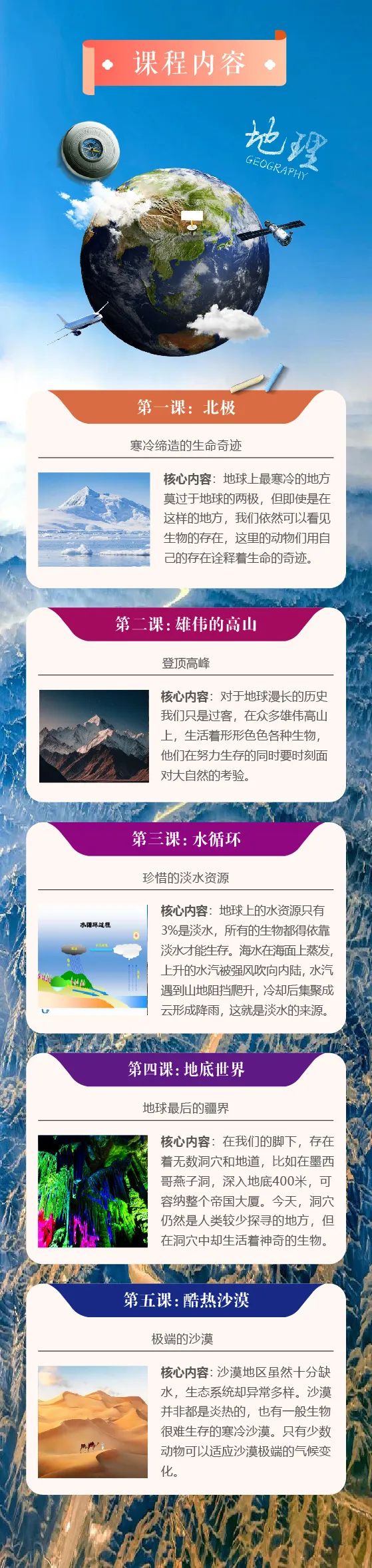 学习地理可以丰富孩子的知识量,让孩子更好地了解世界。地理包括自然地理和人文地理,涵盖了地貌、气候、动植物、经济、文化、民族等多个方面。