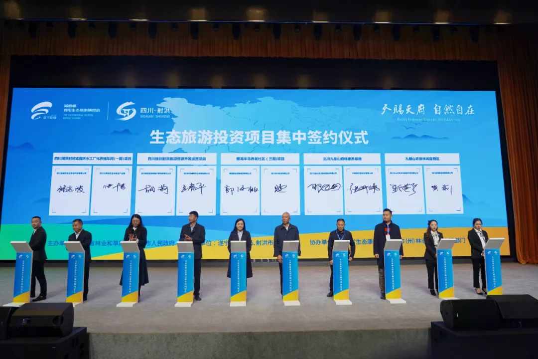 11月16日下午,由四川省林业和草原局、遂宁市人民政府主办,遂宁市林业局、射洪市人民政府承办的四川生态旅游发展大会暨生态旅游投融资大会在射洪举行,本届博览会达成合作项目共计6个,协议投资金额120亿元。