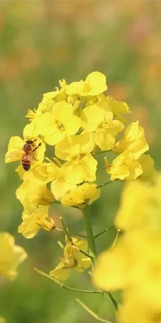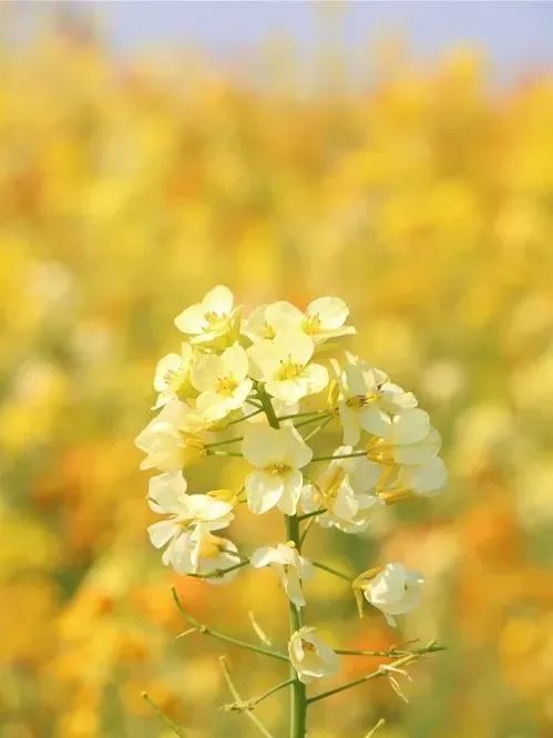 金黄的油菜花在春风的随意吹拂下轻轻摆动
