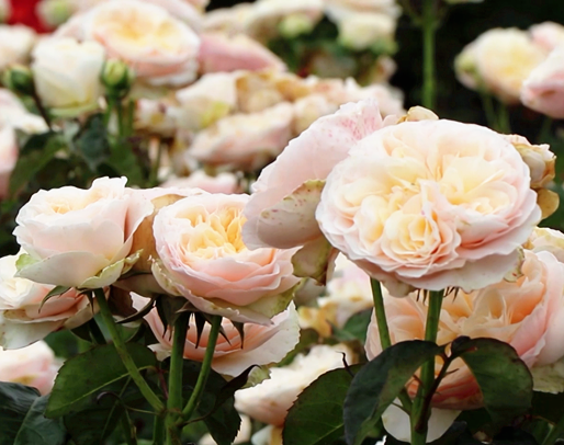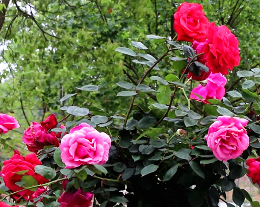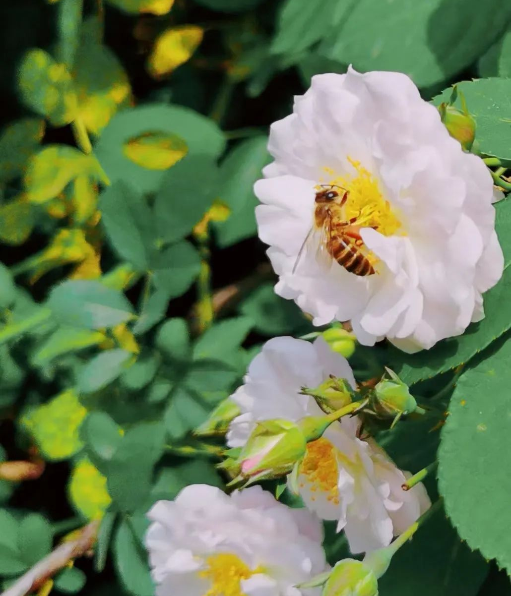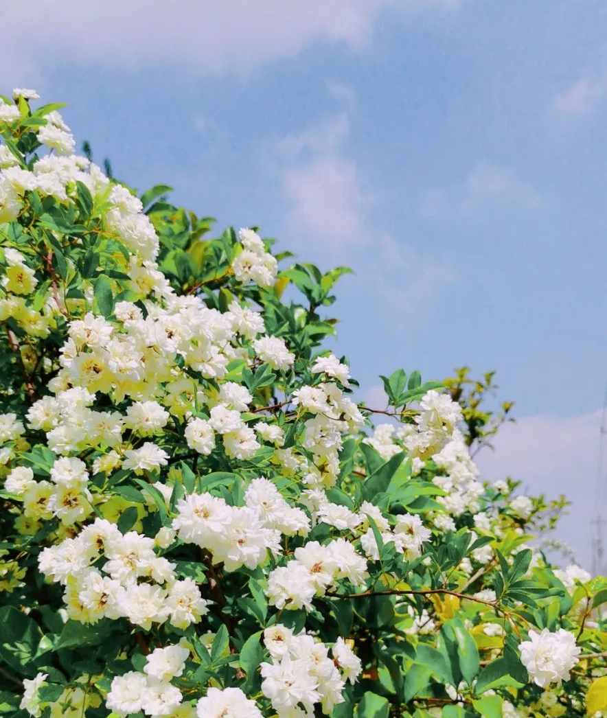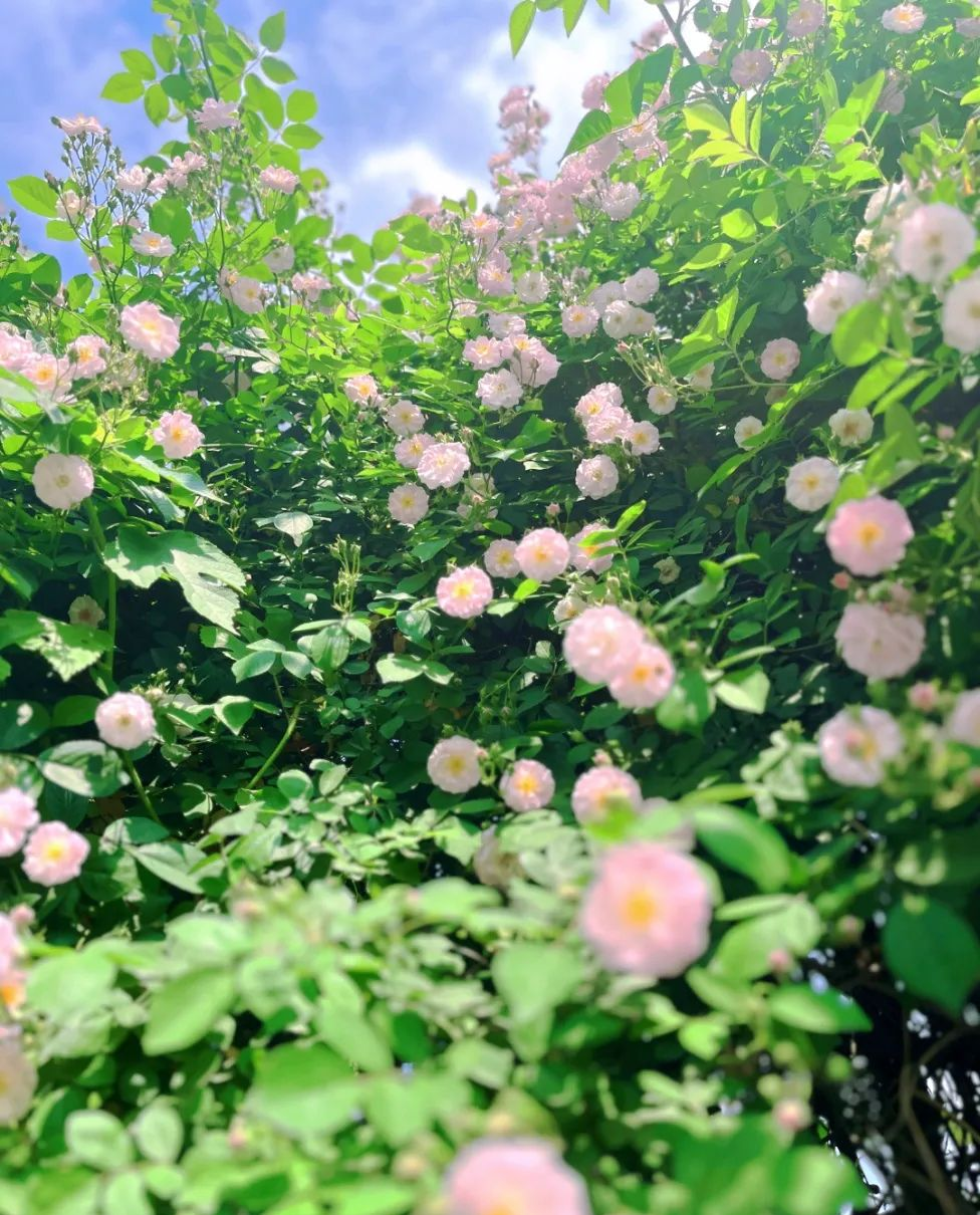月季、蔷薇、鸢尾、喷雪花悄悄绽放