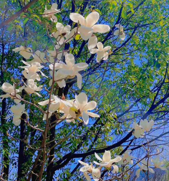 山上的玉兰花朵层层叠叠
