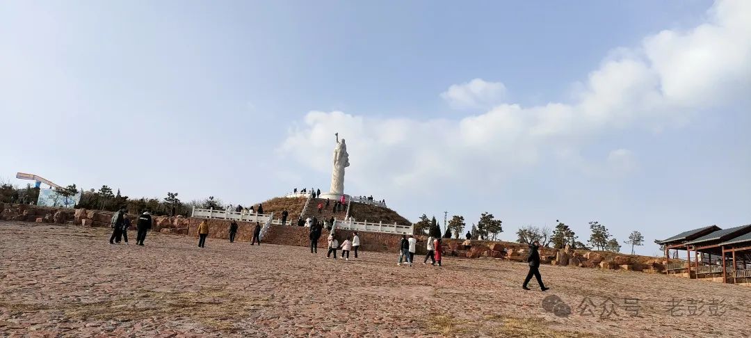 走过这最后的红石头台阶,来到一个很大的一个广场,广场上的大雕像一面是女娲补天一面是伏羲演八卦,这个大雕像高高的耸立的广场中间,有种顶天立地的雄壮又非常威武的感觉。