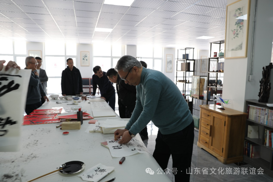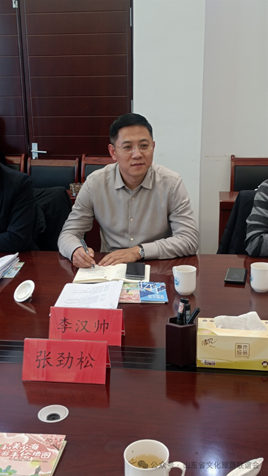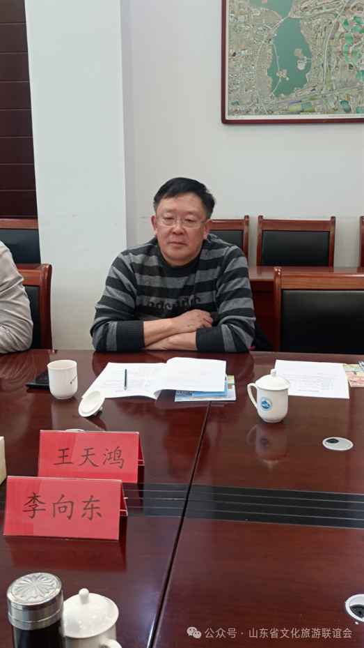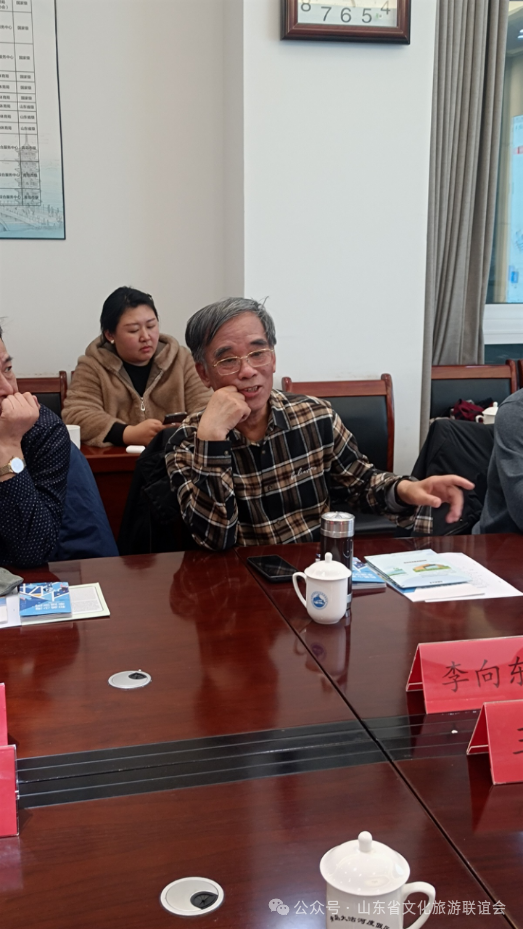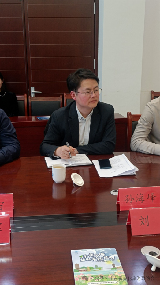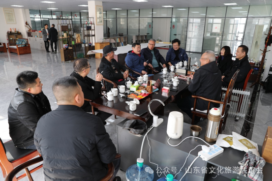 下午,举行了座谈交流会。胶州市政协副主席王天鸿、青岛大沽河省级生态旅游度假区管理委员会副主任李汉帅、胶州市商务局一级主任科员朱利杰、胶州文旅局党组成员、市旅游服务中心主任孙海峰、胶州市美协主席赵建钧、胶州美术馆(画院)馆长王震宙、胶州博物馆副馆长刘娜出席座谈会。胶州文旅局党组成员、市旅游服务中心主任孙海峰介绍了胶州市文化旅游基本情况。青岛大沽河省级生态旅游度假区管理委员会接待部部长刘璐介绍度假区文化旅游的基本情况。