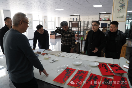 2024 年 3 月 2 日,山东省文化旅游联谊会名誉会长李向东、会长张劲松、副会长卢洪祥、刘奎、吕晓东、张军、秘书长王建辉赶赴青岛胶州,进行考察活动。考察团乘坐观光车,先后考察了青岛大沽河省级生态旅游度假区、宝龙美术馆、大沽河博物馆、未来美术馆。